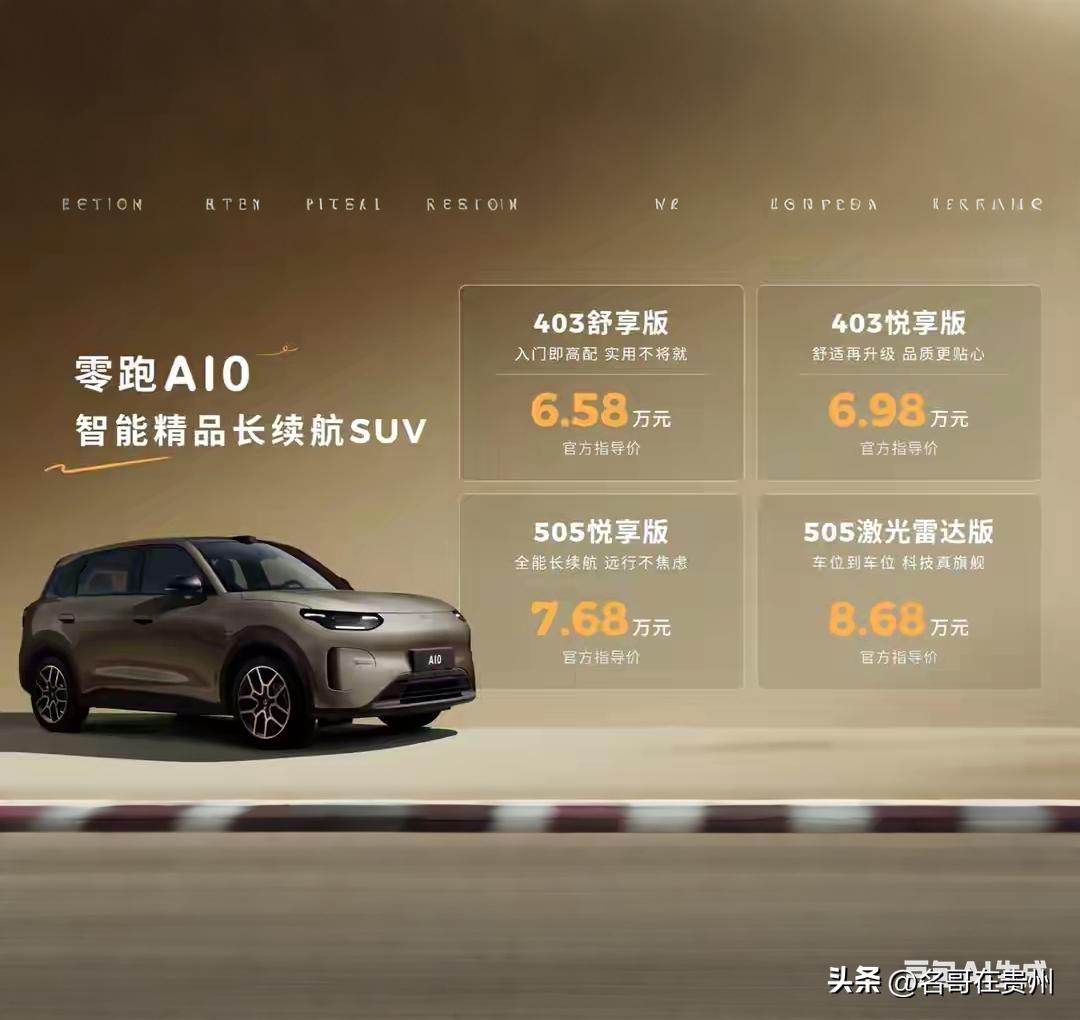8.68万配激光雷达!零跑A10杀疯了,10万级市场要变天 🚨真没想到,新能源车还能这么玩!零跑A10昨晚一公布价格,我直接给跪了——8.68万起售,还带激光雷达!放在两年前,这配置起码20万往上,现在直接干到10万以内,这谁顶得住? 很多人还在纠结买新能源车要不要等,等什么?等价格降下来,等配置堆上去。现在好了,零跑直接把激光雷达这种“高端货”塞进了8万级的车里。全系标配?不,是直接把20万级的智能配置,硬生生拉到了普通家庭够得着的地方。 有人说这是卷,但我觉得这背后是实打实的技术底气。零跑全域自研不是说说而已,8650智驾芯片加8295座舱芯片,这套组合拳打下来,别说同价位,就是往上摸一摸,能打的也不多。 更关键的是,它不是光堆硬件,是真能用。车位到车位的全场景辅助驾驶,城区、高速、记忆泊车,一套系统全搞定。你想想,以前这种功能,得买20多万的车才有,现在8万多就能享受,上班通勤、周末带娃,全程不用操心,这体验感直接拉满。 当然,光智能不够,家用车还得看实用。505公里的CLTC续航,配上油冷电驱,跑个小长途没问题,日常通勤更不用说了。最让我意外的是空间,88.1%的得房率,后排坐三个人不挤,后备箱塞个儿童推车再加几袋菜,轻轻松松。零跑这次是真把家用需求琢磨透了,不玩虚的。 你要知道,这不是零跑为了活下去打价格战。他们去年刚实现年度盈利,现在底气足了,才敢这么玩。A10是A平台的第一款车,也是他们从“生存模式”切换到“稳健发展”的信号。用技术做产品,让用户花更少的钱,买到更值的车,这才是“好而不贵”的真正含义。 说到这,我得感慨一句,以前咱们买10万以内的车,基本就是代步,别想什么智能、科技。现在不一样了,激光雷达、全场景辅助驾驶,这些曾经高高在上的配置,开始走进普通家庭。这背后,是中国新能源汽车技术普惠的实打实落地。 其实想想,零跑A10的出现,不只是多了一款新车,它其实在重新定义10万级纯电SUV的标准。以后谁再说10万以内买不到好车,直接把A10甩过去。 最后问大家一句,8.68万带激光雷达、505公里续航,你觉得零跑A10能成为10万内纯电SUV的销冠吗?评论区聊聊,我等着看你们的神评论! (作者申明:本文内容综合整理自零跑汽车官方发布信息、汽车之家、懂车帝等平台上市报道及媒体评测数据)