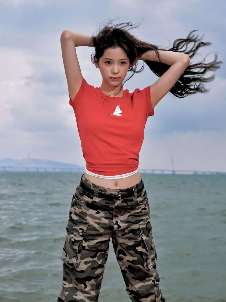 欧阳娜娜春日写真曝光!穿红色T恤秀性感小蛮腰