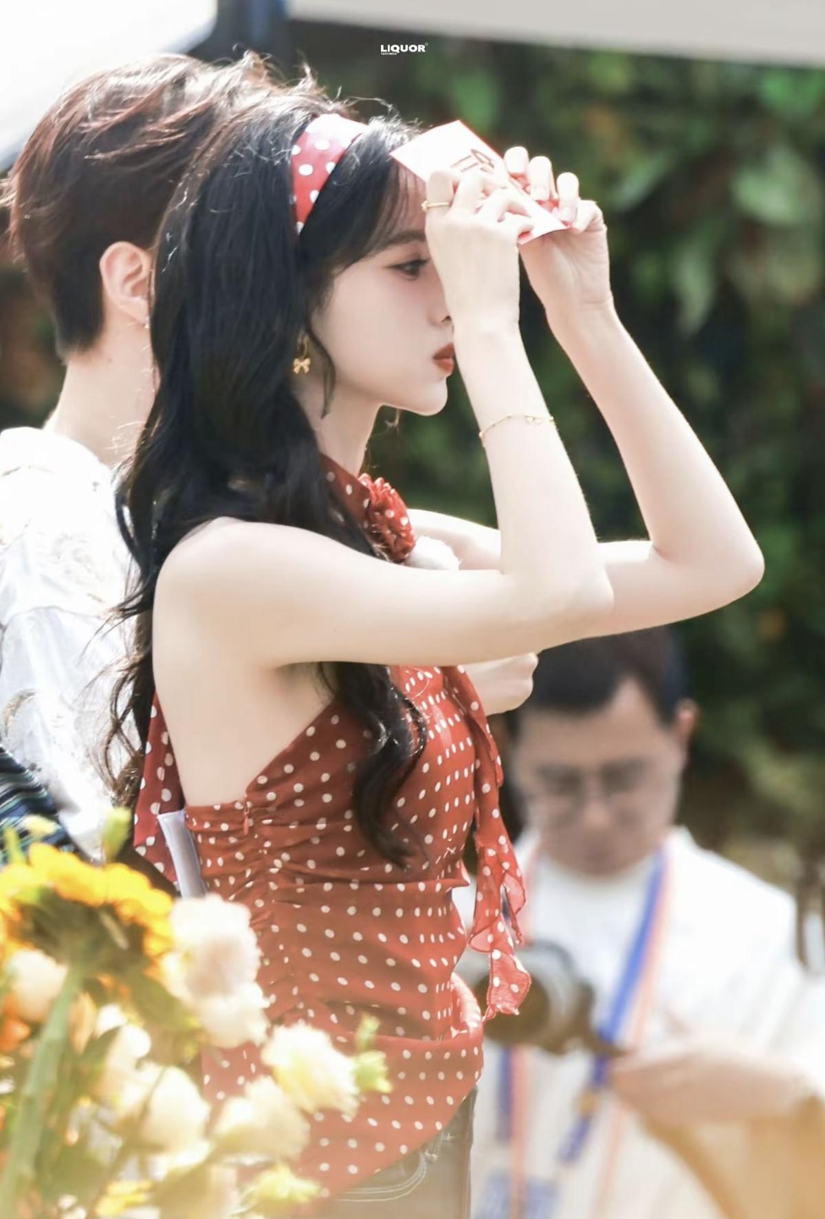 孟姐的复古波点造型太绝了[赞]红底白点挂脖上衣+同色系发带,搭配牛仔裤,港风氛围感直接拉满💃灵动卷发衬得眉[给力]娱乐明星
