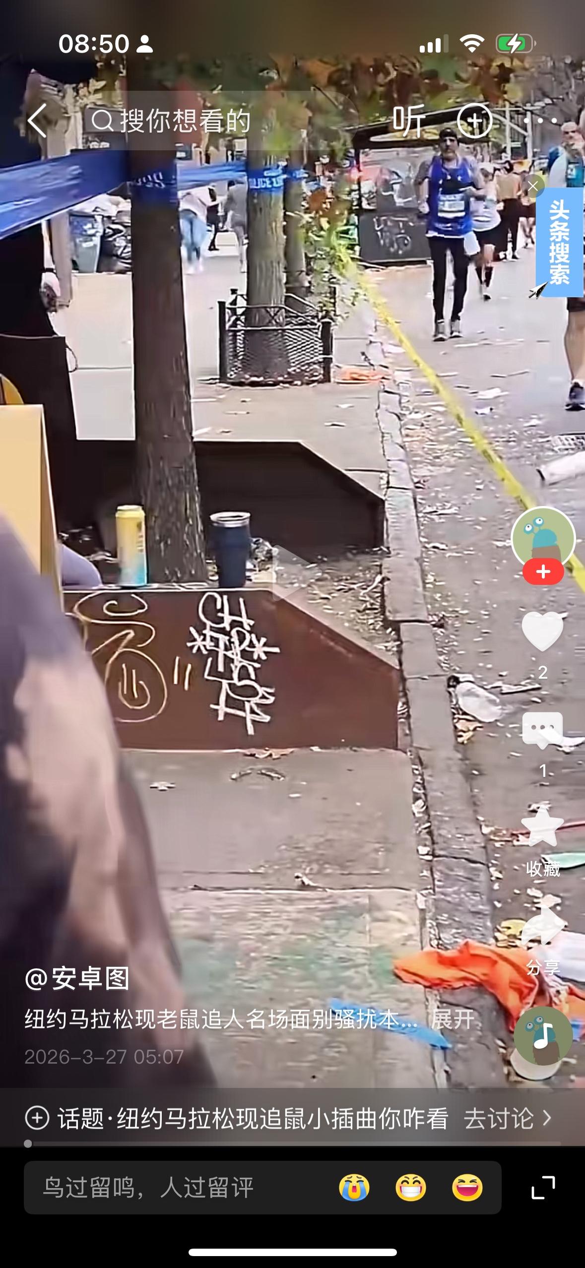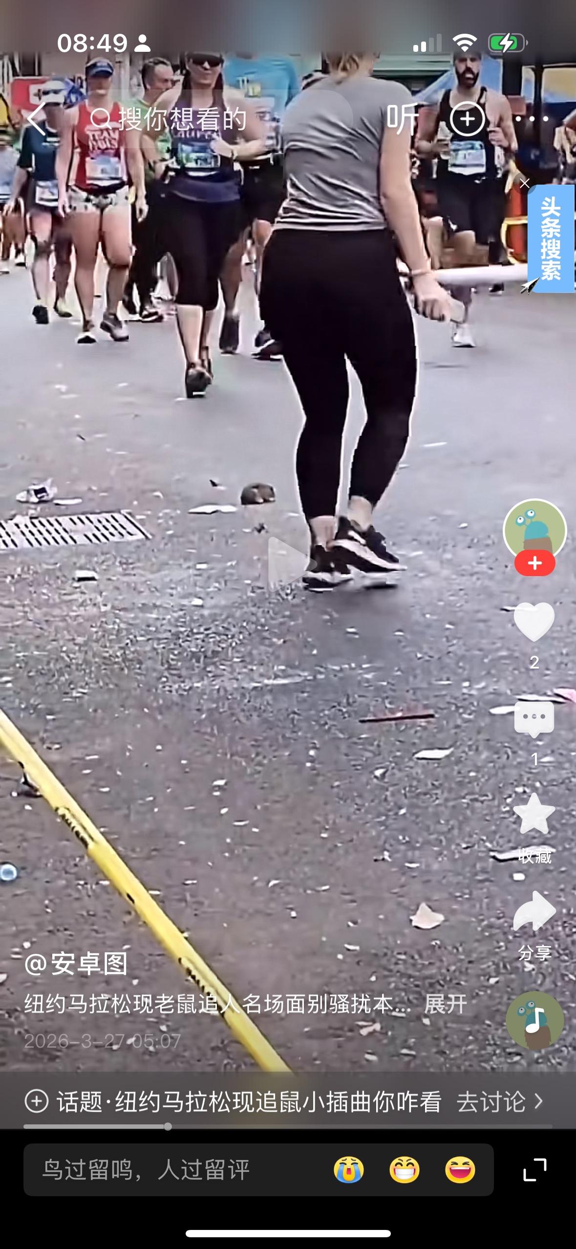 马路边有一只老鼠,这个女人去用棍子驱赶这只老鼠,街上满地的都是垃圾还有涂鸦,你知道这是什么地方吗?居然是美国纽约马拉松的赛道上。世界上大满贯马拉松大名鼎鼎的纽约马拉松的赛道居然就是这个样子的。瞬间让人倒了大胃口。看一看可能要花上万元的报名费才能跑的马拉松即可就失去了兴趣。我在全国跑了这么多马拉松,就算再怎么地也不会在街道上跑道上看到老鼠吧。