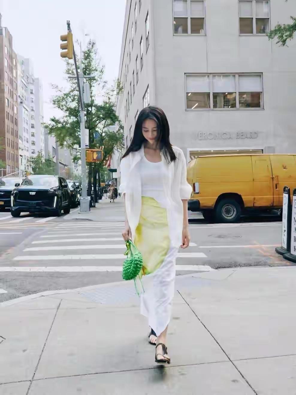 高圆圆一组街拍刷爆了朋友圈,没有夸张的色彩,没有繁复的设计,一件白背心搭配轻薄白