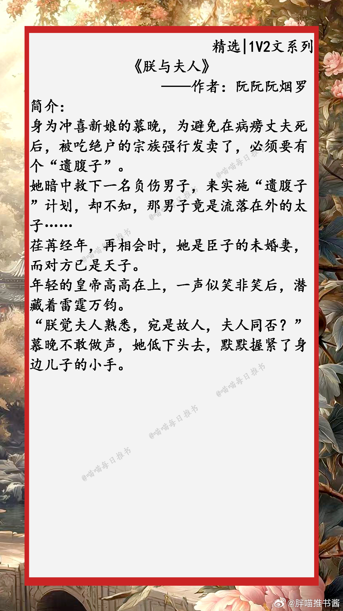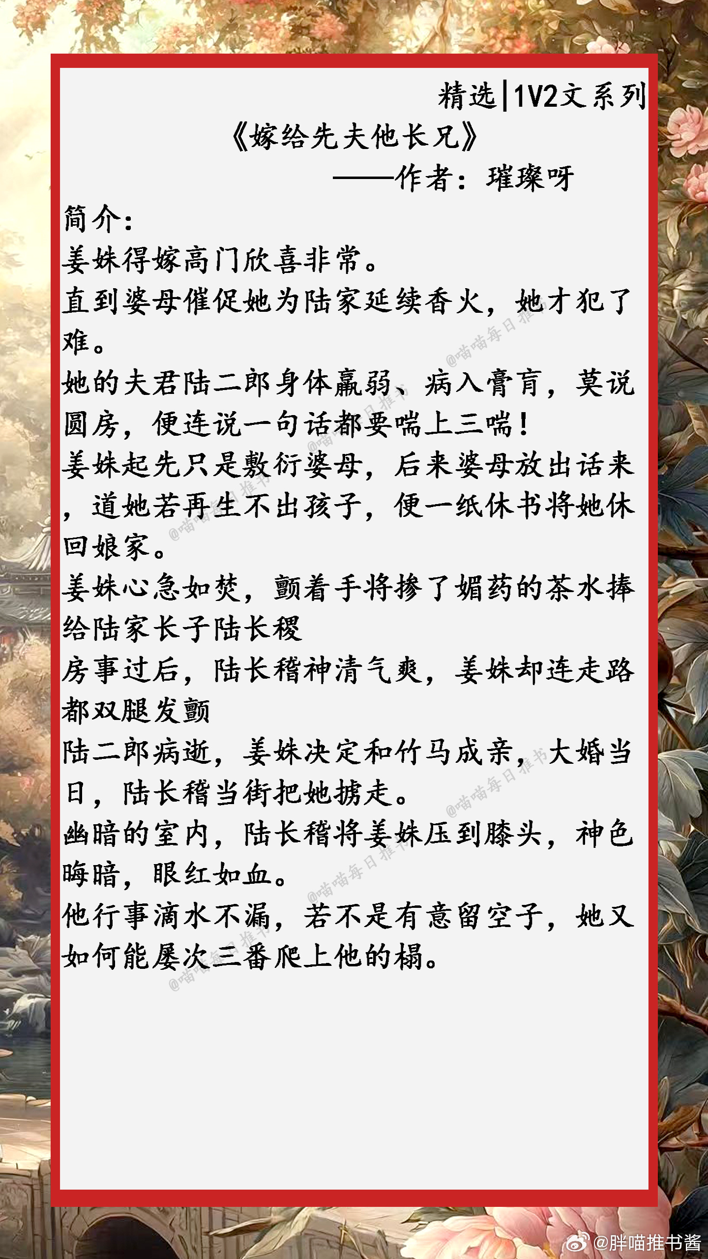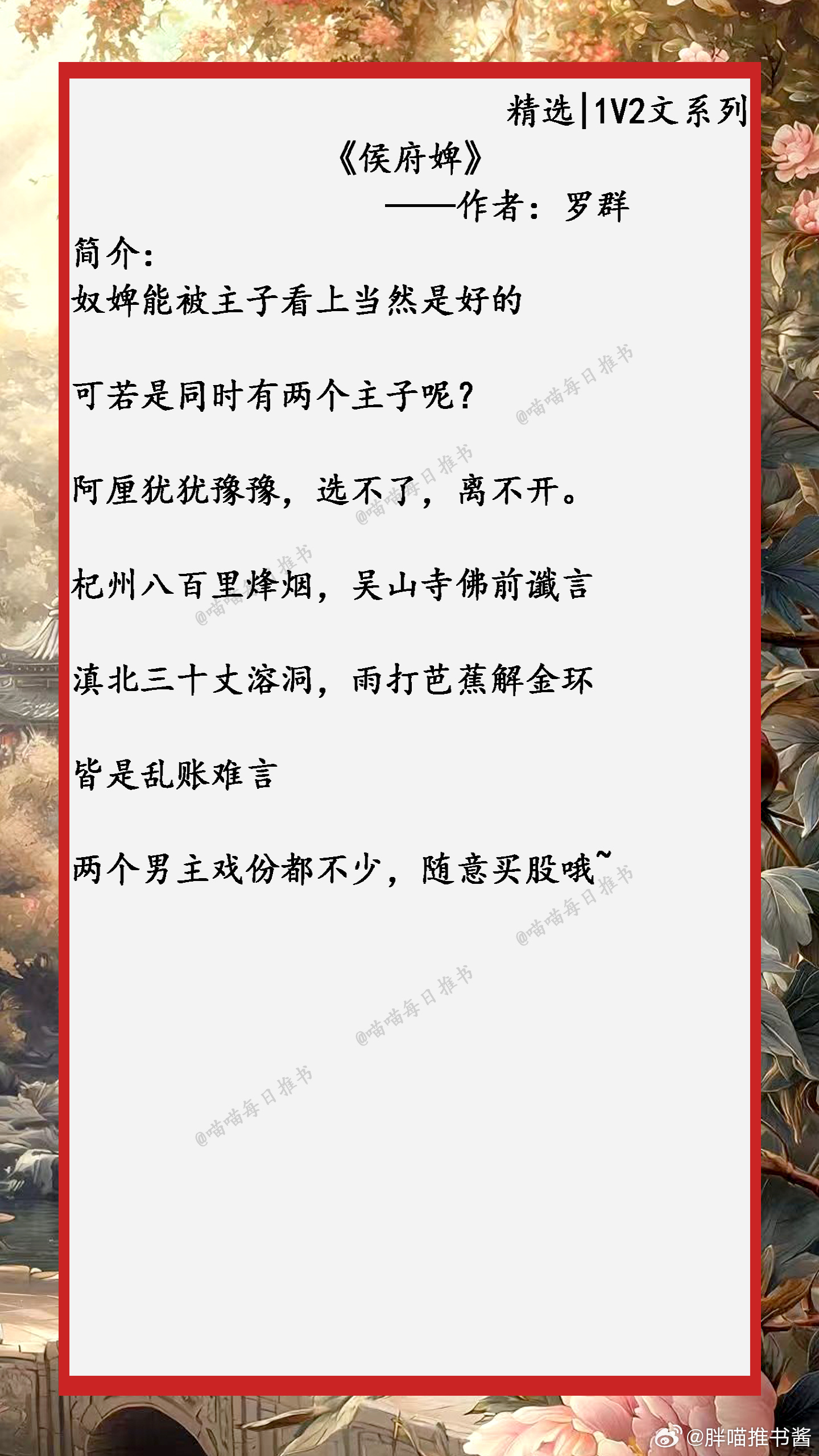 精选【1V2文系列合集】:雄竞修罗场,为爱互扯头花!小说推文好看的小说 1、《珠玉在侧》——作者:好大一锭银2、《是我哥》——作者:僵尸嬷嬷3、《明月歌》——作者:小舟遥遥4、《朕与夫人》——作者:阮阮阮烟罗5、《嫁给先夫他长兄》——作者:璀璨呀6、《侯府婢》——作者:罗群7、《窃情》——作者:木鬼衣8、《静妃》——作者:青灯9、《朱柿》——作者:绿鳞