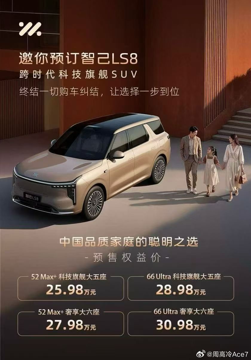 这个价格作为LS6车主真的想升级一下了,期待上市老车主升级政策能给力一些呀!智己LS8震撼预售25.98万元起