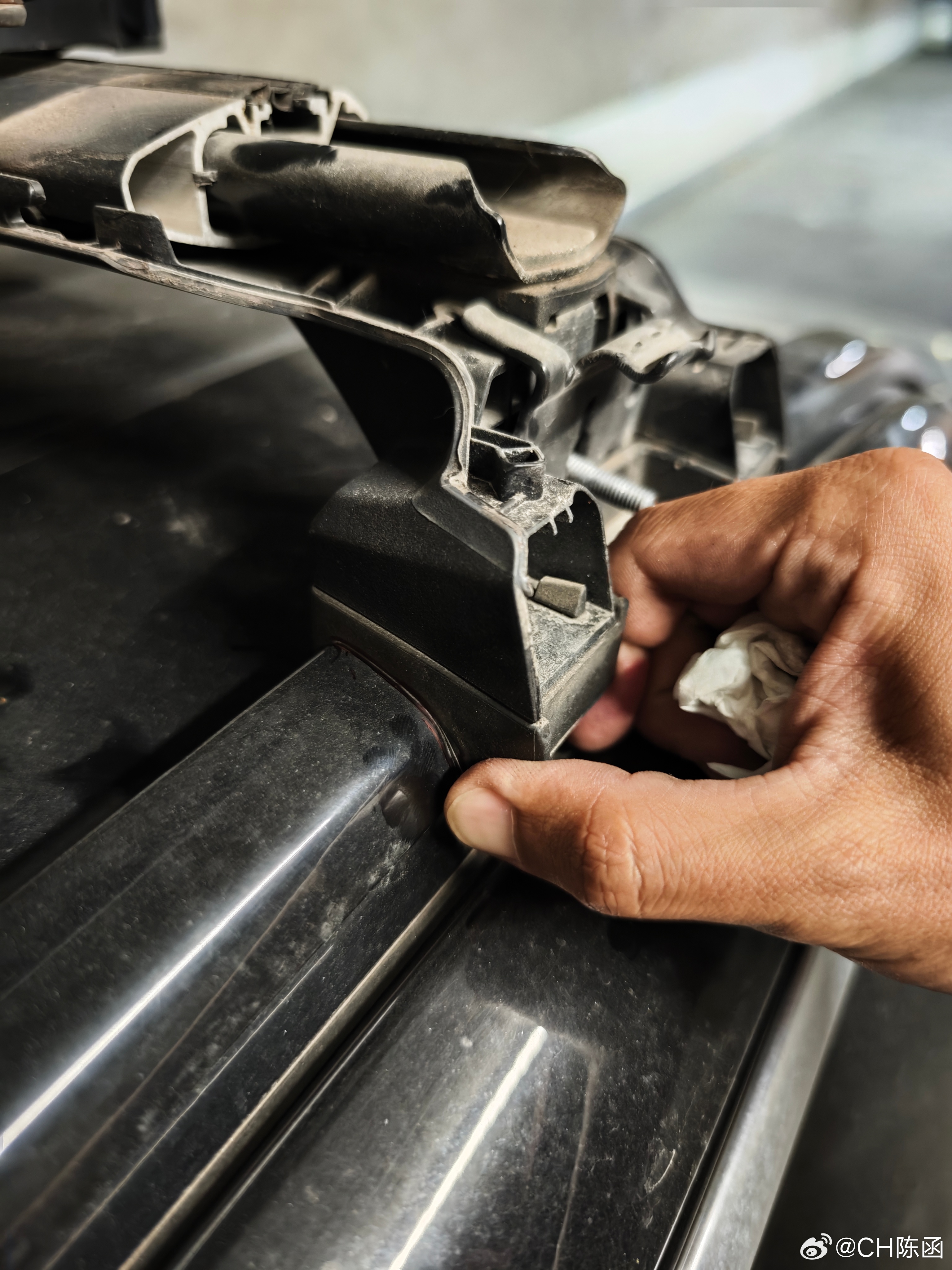 给大家一个忠告不要一个人拆车顶行李架+行李框太费劲了!!!最后不得不把框拆成两半不拆的话一个人从车顶根本拿不下来这个框全铁的,又大又重