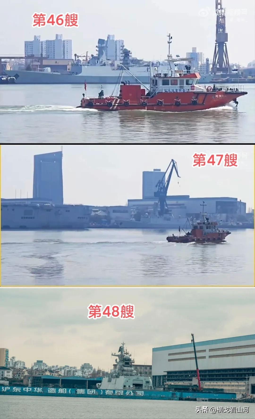 第46到第50艘054A护卫舰全部亮相! 至此从首舰徐州舰2005年开工建造,到第50艘下水舾装,整个054A系列长达20年的建造周期宣告结束。 50艘054A还有2艘054B,平均一年2.4艘,日本的第一批次12艘最上级平均也是一年两艘,不过第二批次12艘改进型衔接不上,要断开3年,在大型护卫舰方面日本的建造速度不比中国慢多少了。还有樱级1900吨级巡逻舰的建造计划差不多是一年四艘,056A则是一年造八艘以上,50艘只用了6年。 其他方面、其他国家就全被中国碾压了。美国前些年的濒海战斗舰和弗吉尼亚级也还可以,现在也废了。