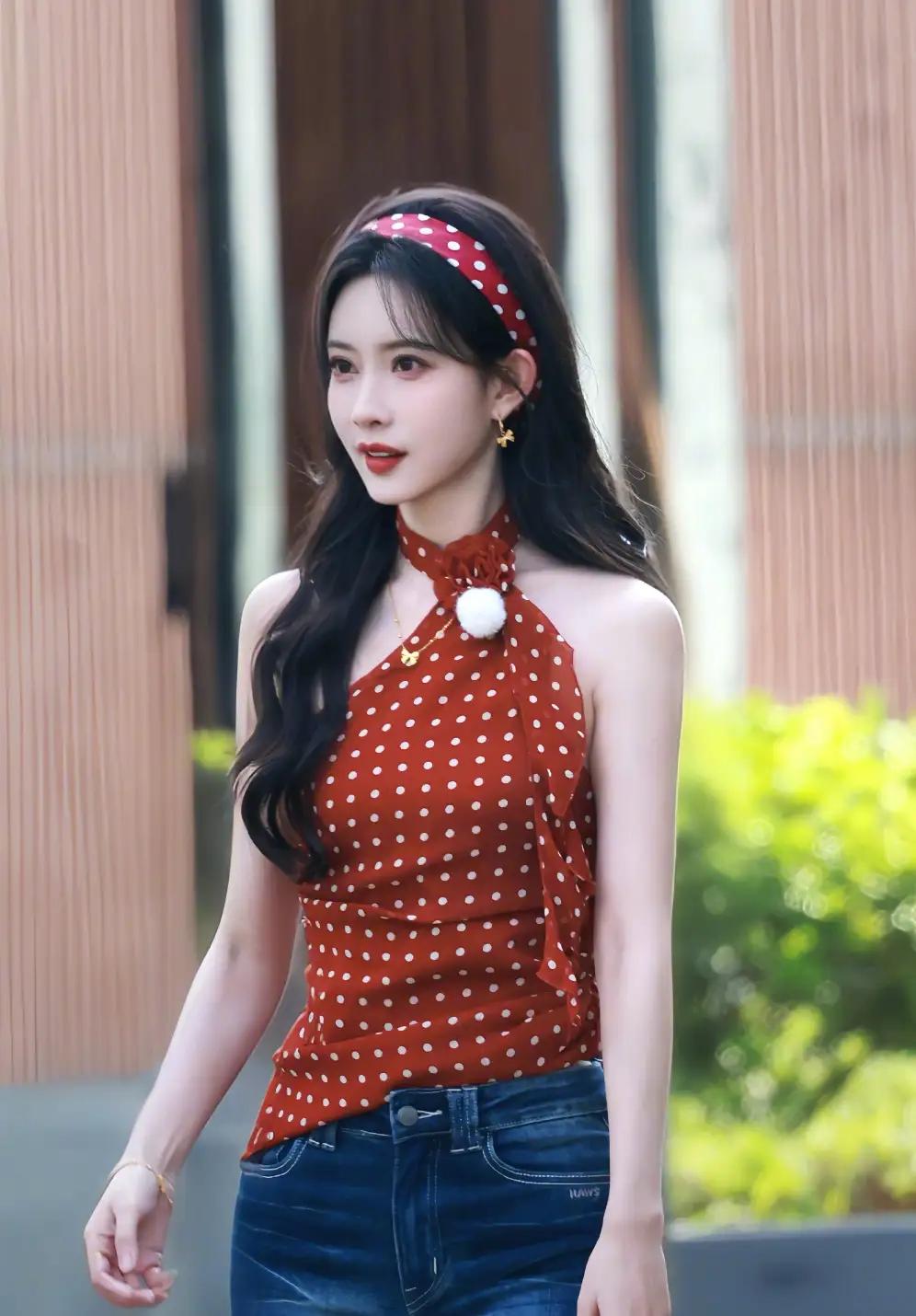 孟子义真的很精致,身着草灰色吊带裙,又柔又美。孟子义