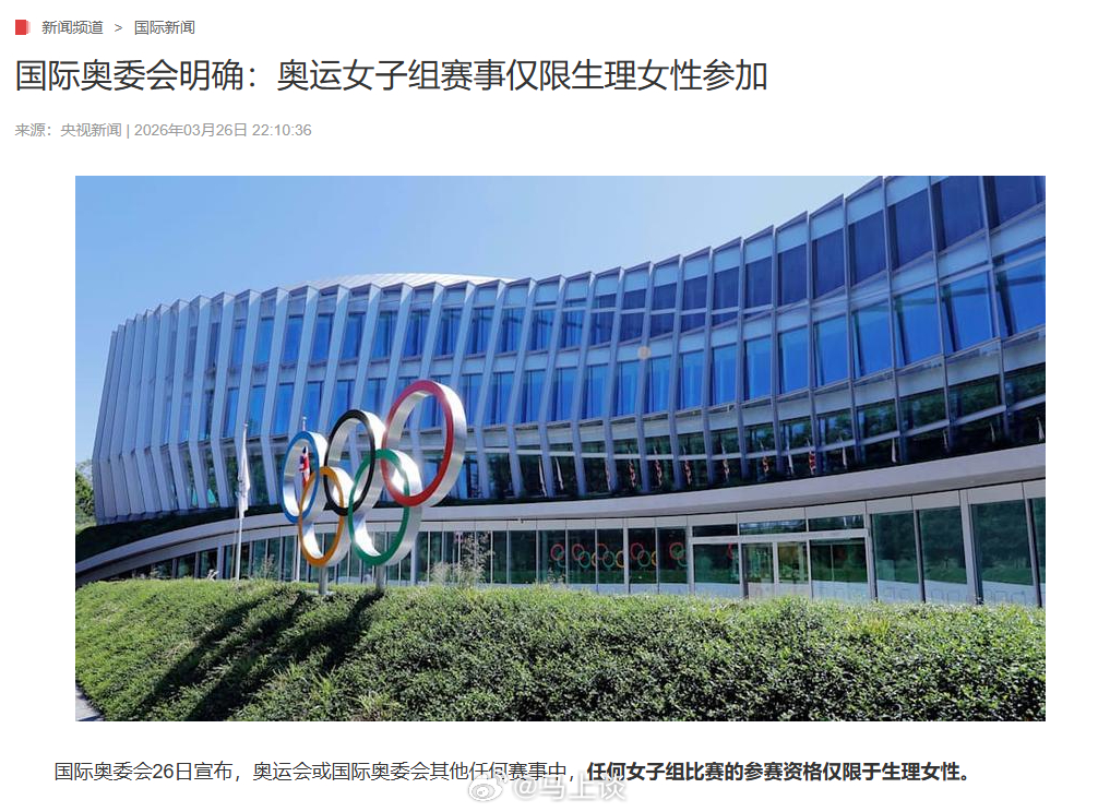 国际奥委会明确奥运女子组赛事仅限生理女性参加。为啥?此前巴黎奥运会上,拳击女子6