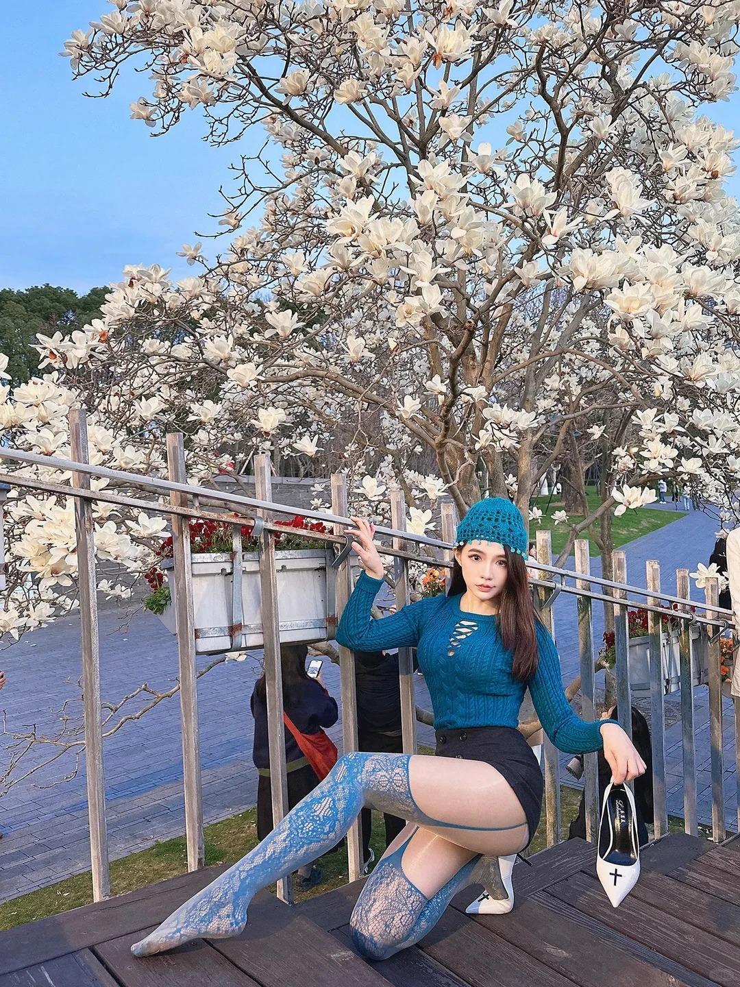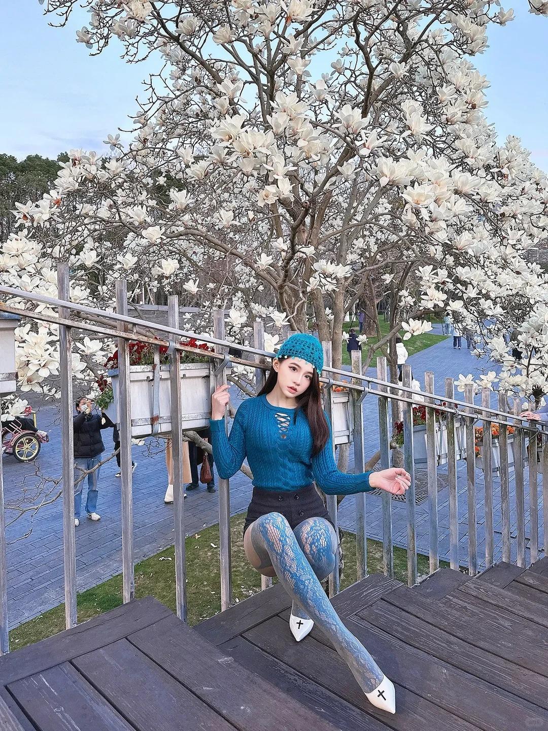 料峭春风还带着余寒,玉兰花已抢先缀满枝头。白的似凝脂,紫的如霞染,无叶相衬更显清绝风骨,像御姐从不攀附的气场。 特意换上一袭简约风衣,配一双清冷的蓝色丝袜。薄丝贴腿,勾勒利落线条,蓝调与玉兰花的白紫撞出高级感。风掠过花影,落进裙摆与袜边,暗香缠上脚踝。 不必挤在人群里赏花,站在疏枝下,抬眸是满树繁花,低头是足下的蓝调风情。早春的浪漫,从来不是软乎乎的甜,而是御姐般清醒又惊艳的美。