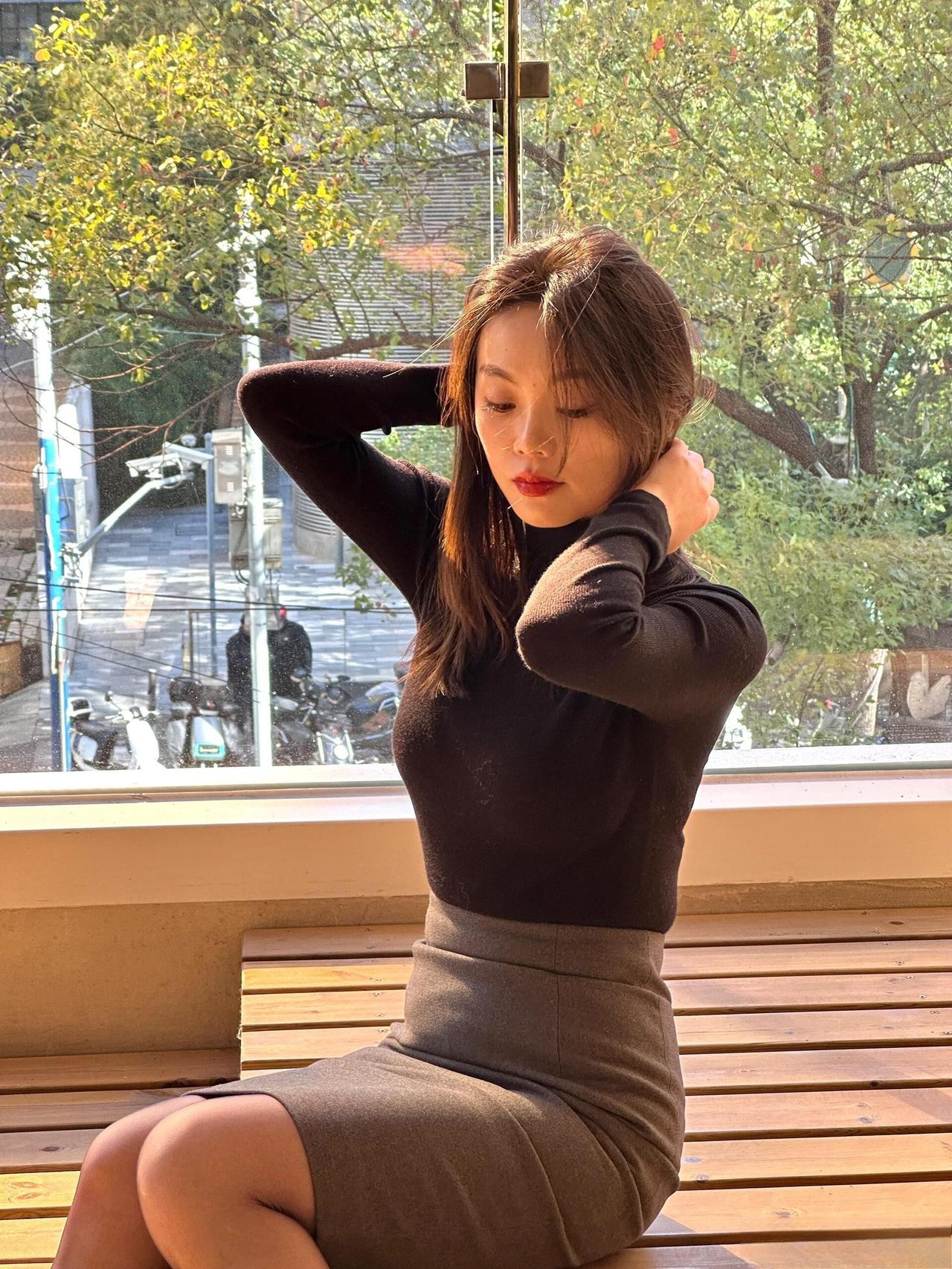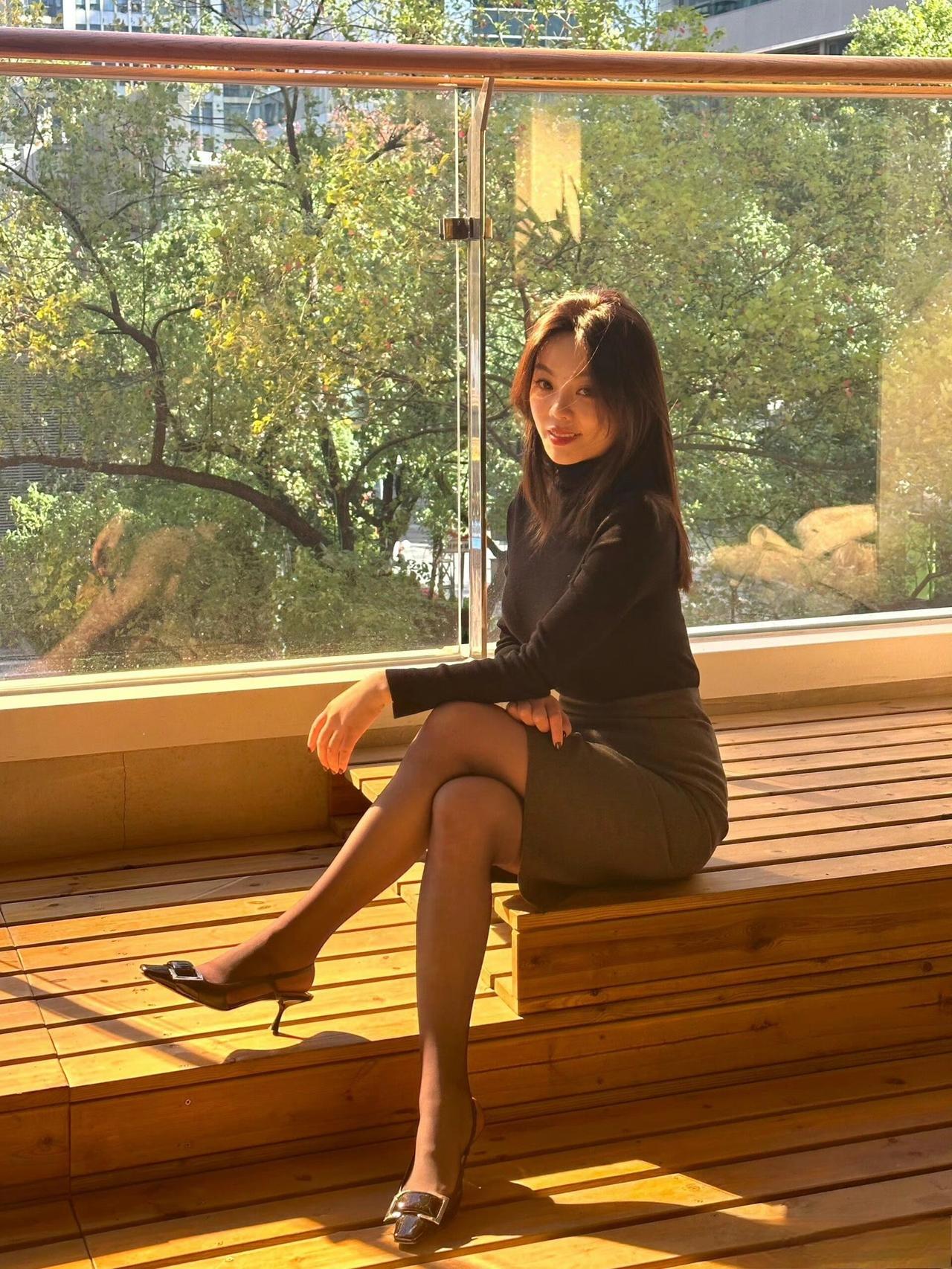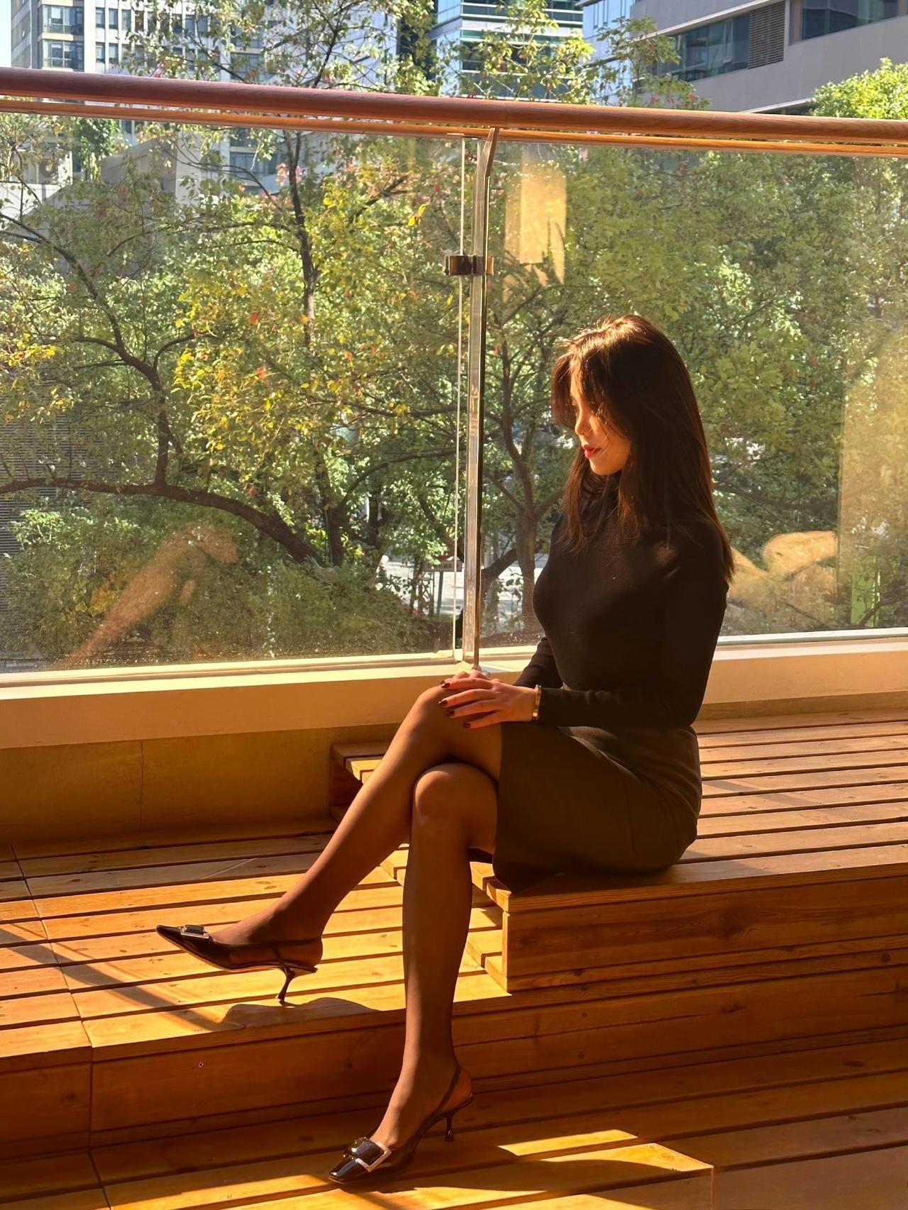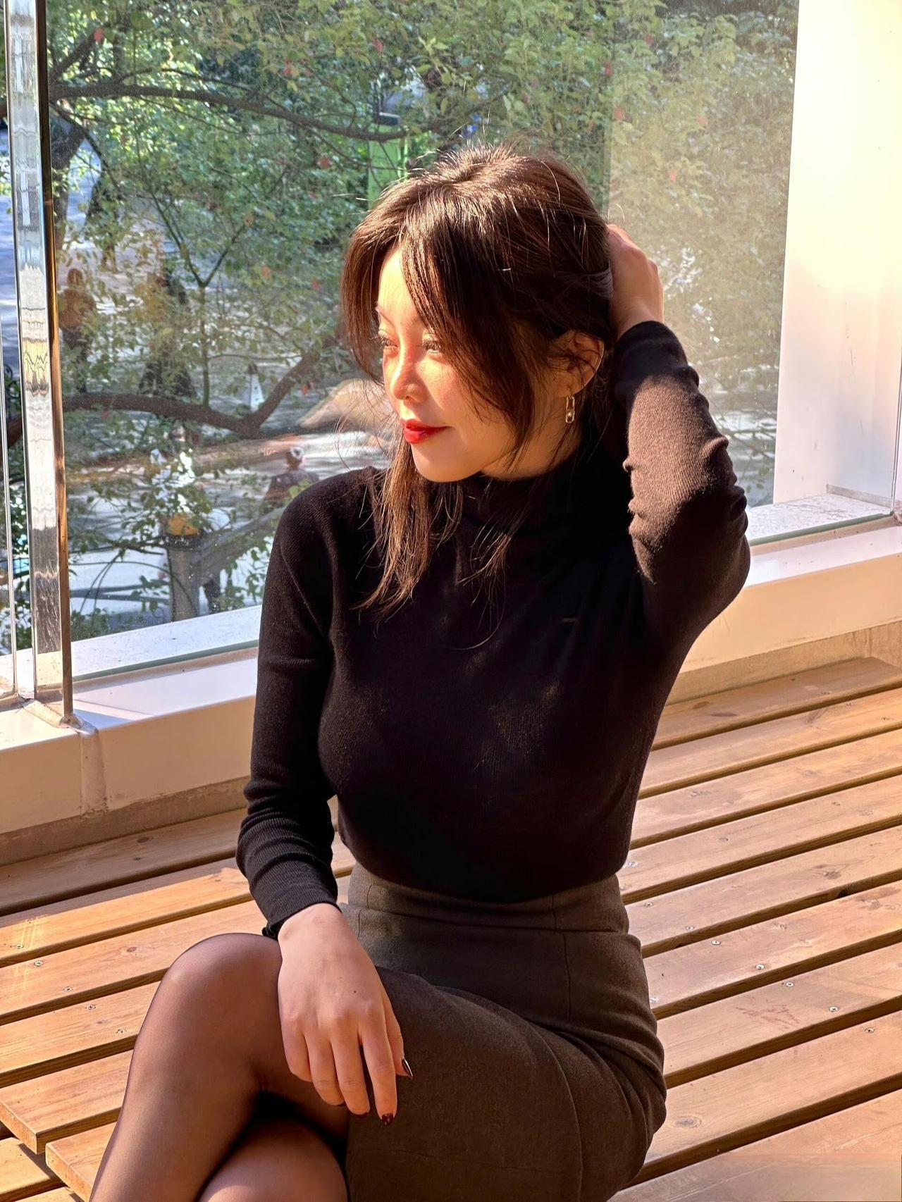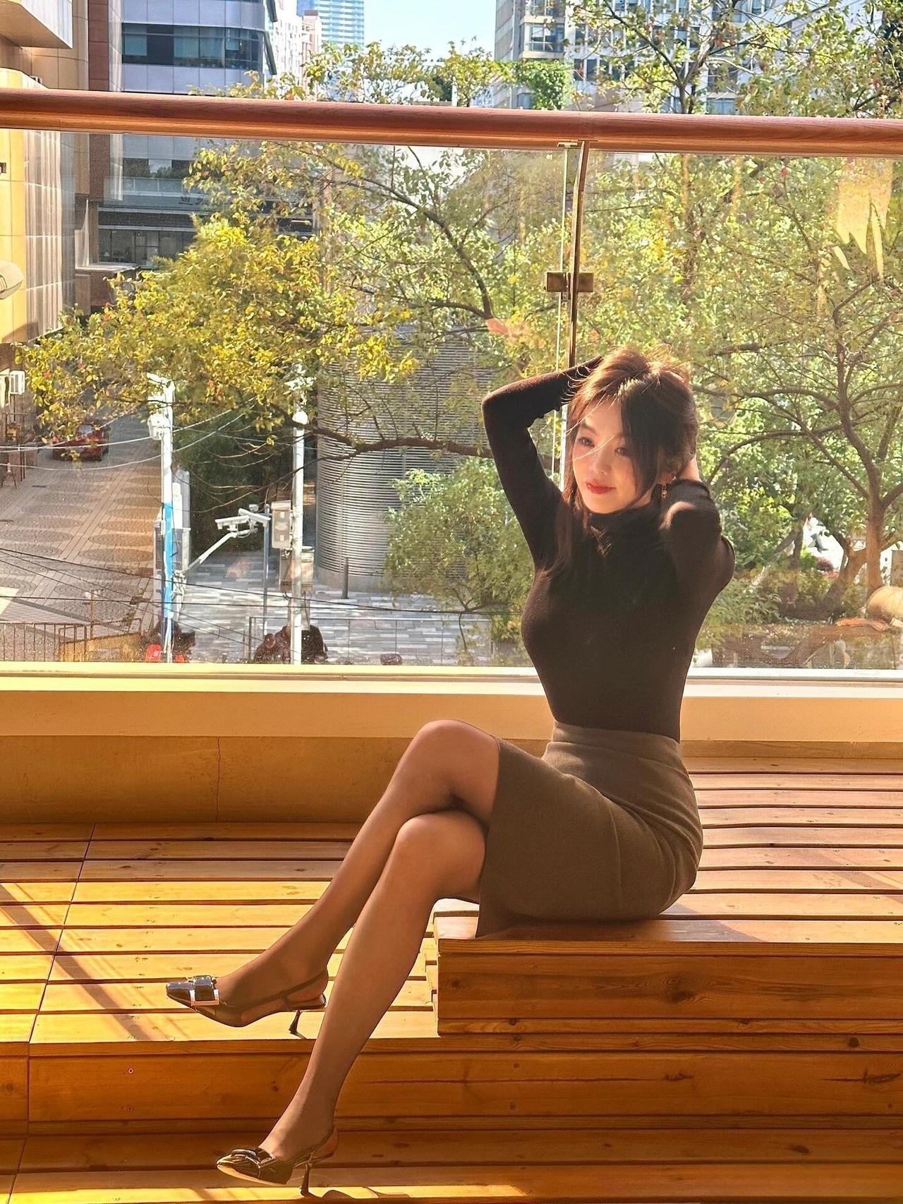 这套是简约轻熟通勤风,核心是黑高领+灰包臀裙的搭配:修身内搭显利落,同色系半裙增加优雅质感,灰调袜+金属扣凉鞋强化轻熟细节,舒适又有气质。灰调Polo裙 气质灰裙