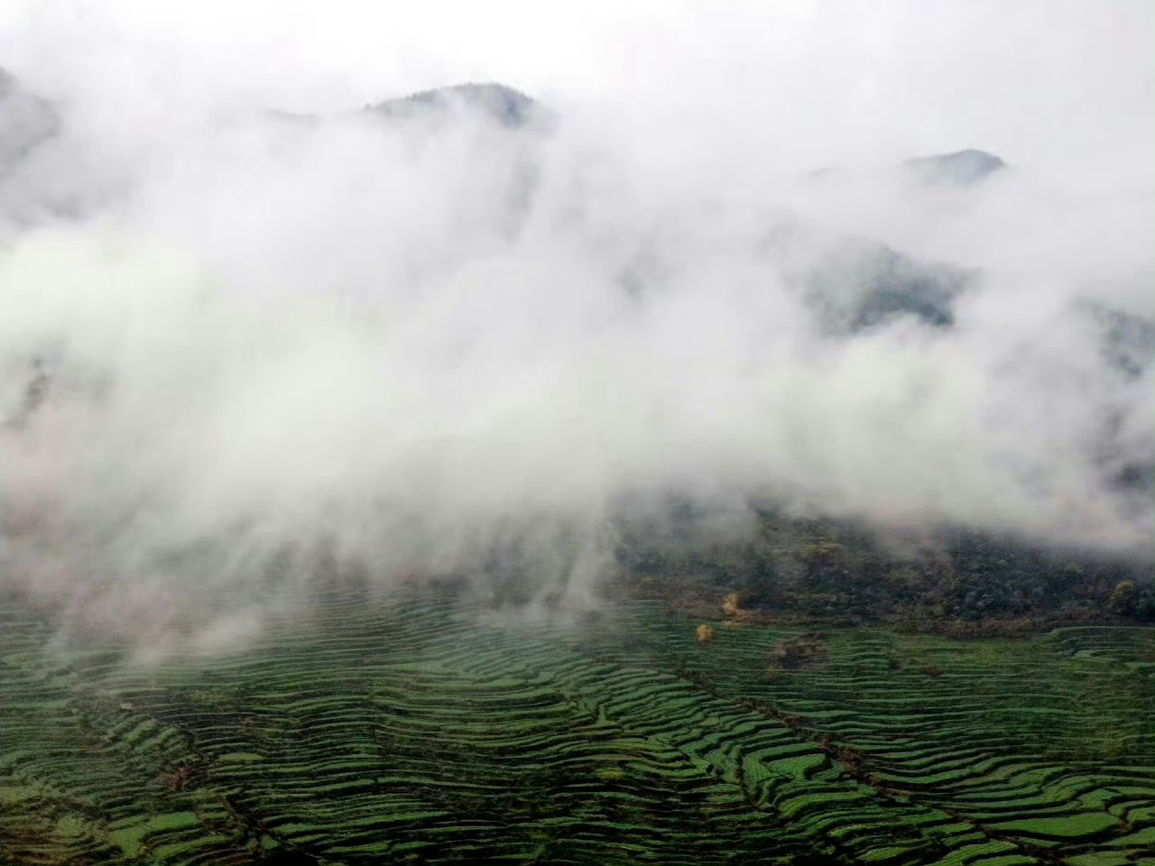 溪流潺潺绕着田垄,青山在雾霭里叠成墨色的诗行,手提空桶踏在乡径上,把山野的清寂与