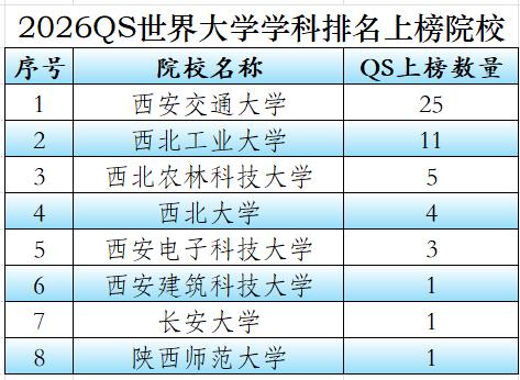 2026年QS世界大学学科排名发布,陕西8所高校上榜,西安建筑科技大学一个学科上