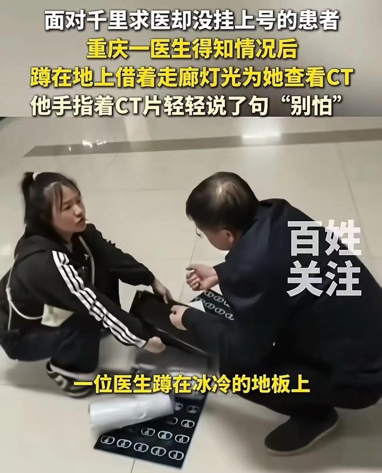 “这个医生必须让他火!”医生蹲地看片,患者千里求医无号,结局暖哭全网 医院走廊灯光昏暗,一个身穿便装的中年男人蹲在冰冷地板上,举着CT片子对着天花板感应灯仔细端详。这一幕被路人拍下,传遍全网。 一、千里求医,没挂上号,她守在走廊不愿走 李大姐从广西坐了十几个小时硬座火车,专程来重庆找胸外科专家看病。可专家号早没了,加号也加不上。 她舍不得住酒店,更怕白跑一趟耽误病情,就抱着最后一丝希望,站在走廊里等医生下班碰碰运气。 二、医生蹲地看片,一句“别怕”让人破防 一位穿便装的中年男人从诊室出来准备下班,李大姐认出是戴医生,赶紧递上片子。 他没拒绝,也没说“明天再来”,而是接过片子,直接蹲在走廊地板上,对着天花板灯光一张张仔细翻看。他指着片子轻声说:“这个影子不一定是坏事,别害怕,我们能处理。” 李大姐紧皱的眉头松开了。 这位医生正是陆军军医大学第二附属医院胸外科主任医师戴纪刚,国内胸外科顶级专家。 三、法律视角:医生下班后看病,有风险吗? 很多人会问:医生下班后、非诊疗场景下看病,出了事谁负责? 根据《民法典》第一千二百一十八条,诊疗活动中患者受损,医务人员有过错的,由医疗机构赔偿。关键是“诊疗活动”的认定——戴医生看片子、分析病情,已构成事实上的诊疗行为。 如果在医院外、非职务行为下出问题,责任可能由医生个人承担。戴医生不是不知道风险,但他还是选择了蹲下去。 四、这一蹲,蹲出了医者仁心 网友评论很戳心:“医生第一要是德,第二才是术,这个医生两条都符合。” 戴医生这一蹲,之所以能戳中这么多人,是因为他用行动告诉大家:再忙,也可以温柔。他蹲下的是身体,立起的是医魂。 来源: 综合自网络报道