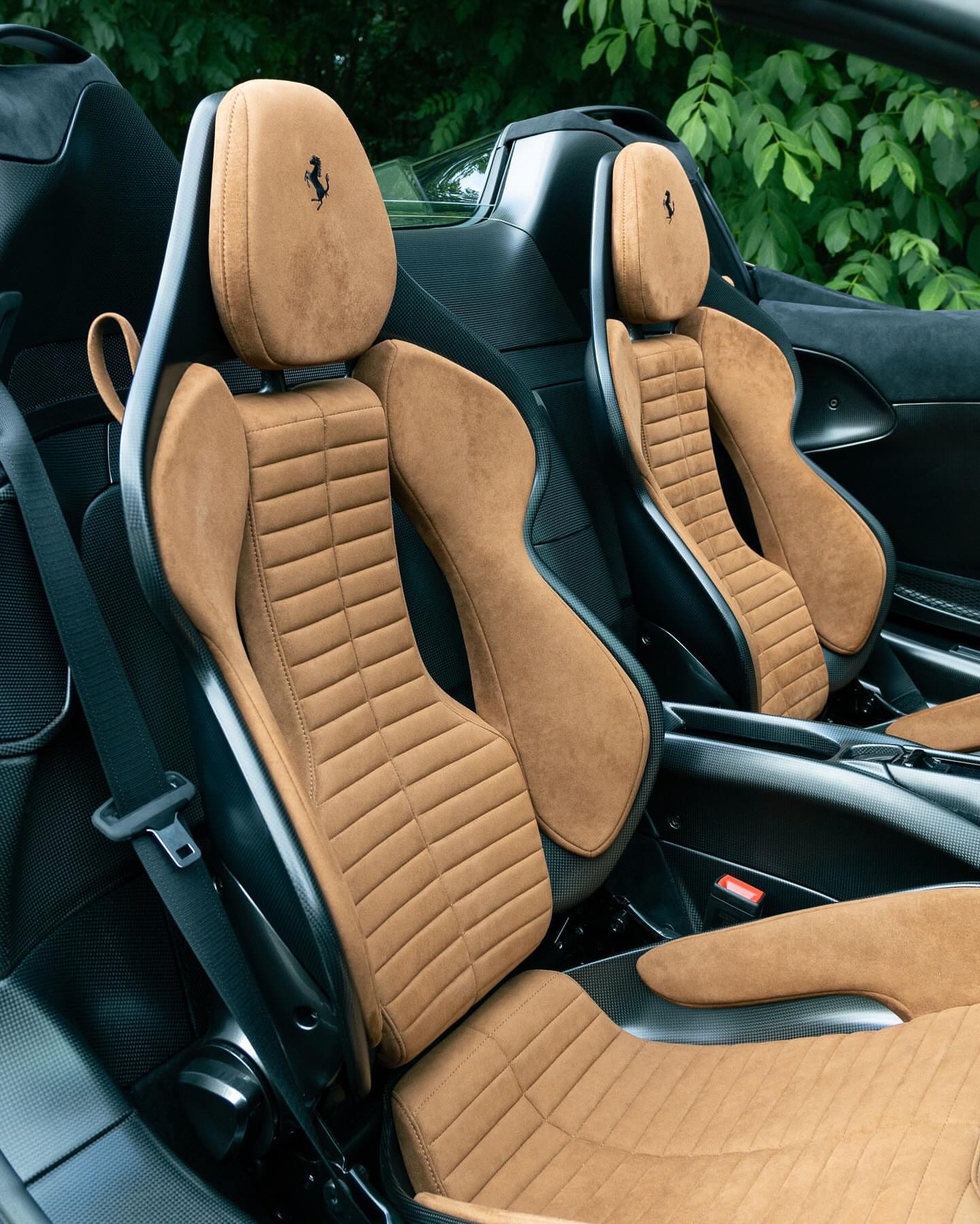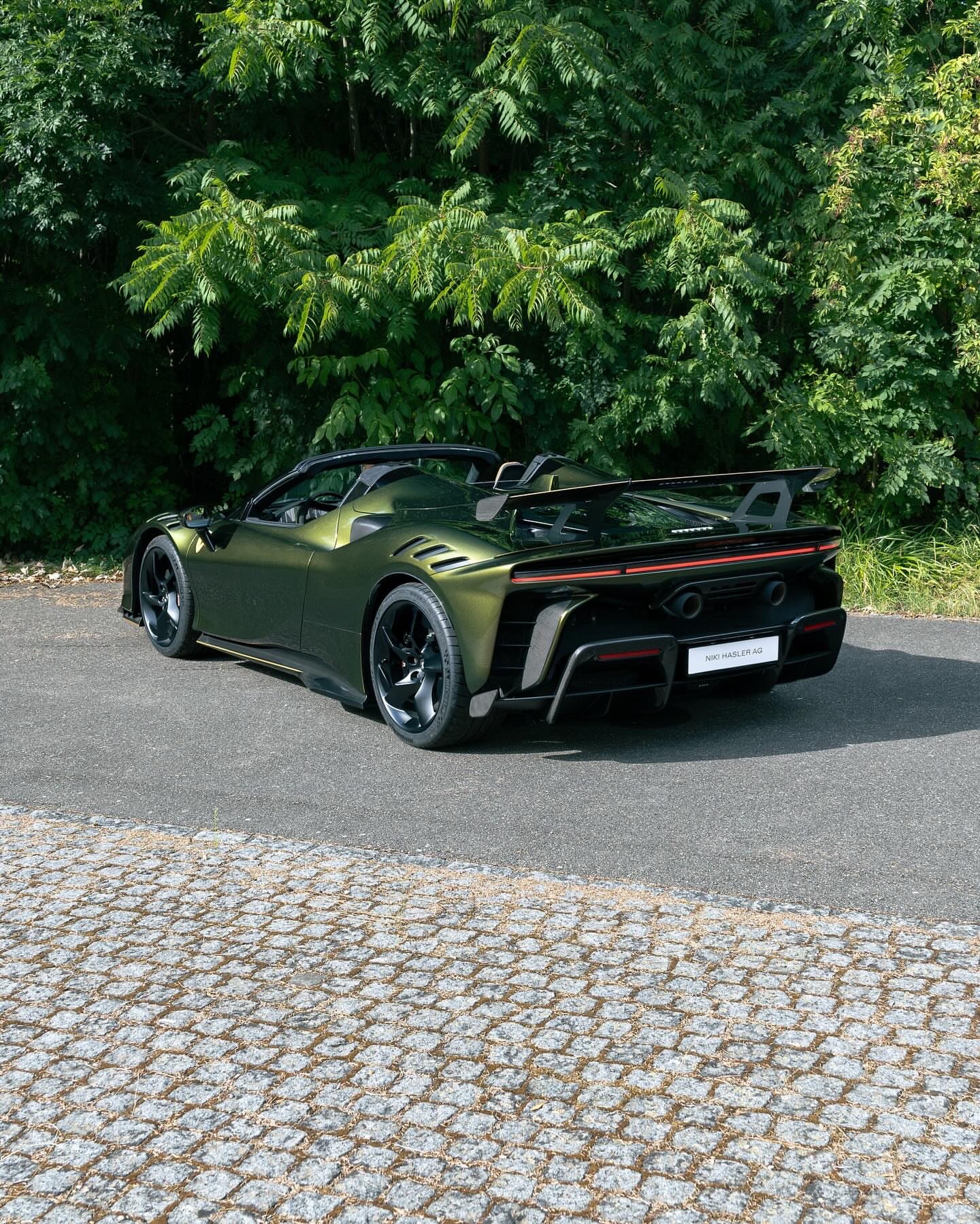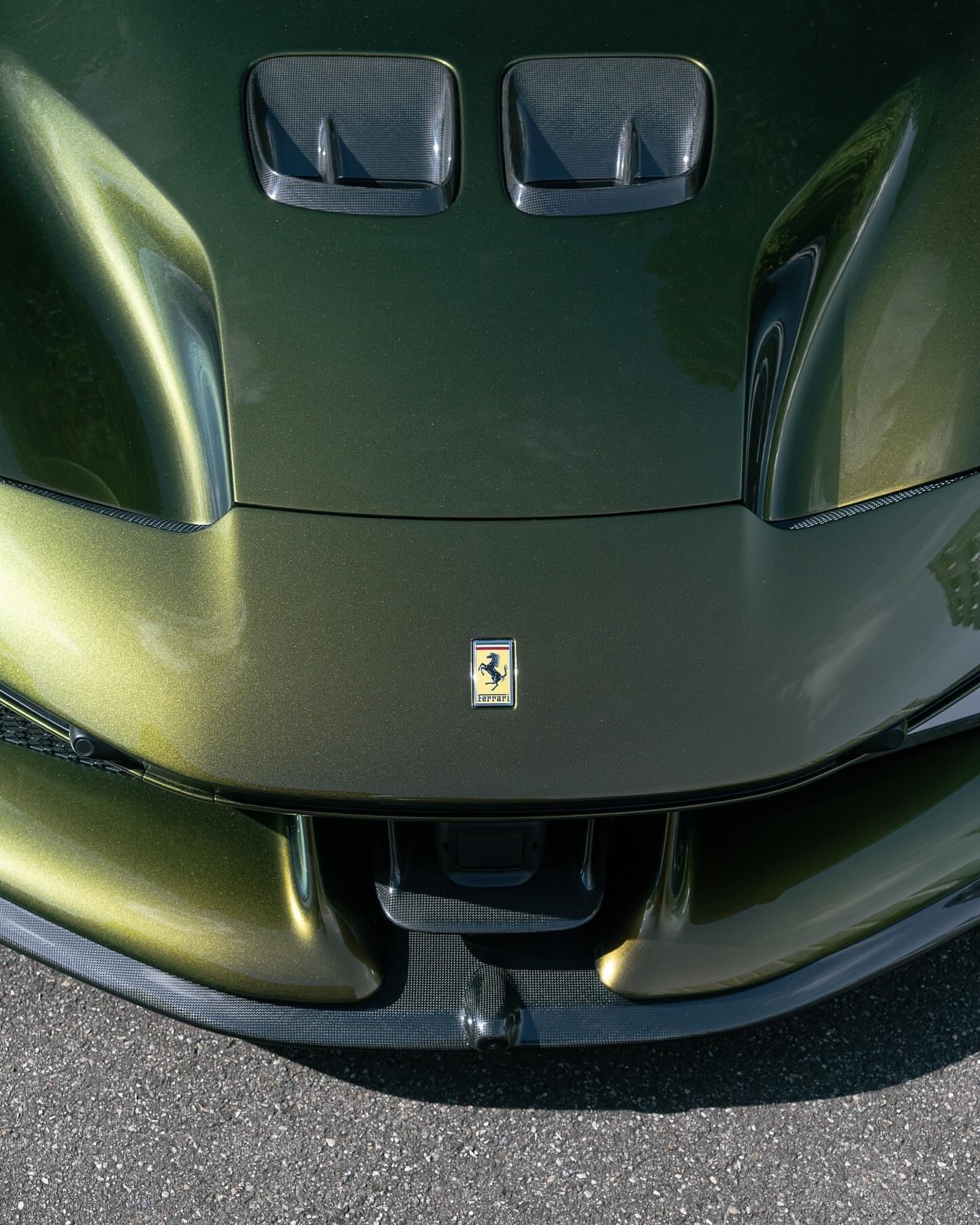 定制款 SF90 XX Spider。这款 SF90 XX 采用的是首次在 Tailor Made Cavalcade 系列中亮相的“维特拉绿”车漆,车身下部带有“金属金”色的梦幻线条。内饰为黑色 Alcantara 材质,搭配带有水平条纹的“红褐色 Revo Alcantara 碳纤维”赛车座椅。