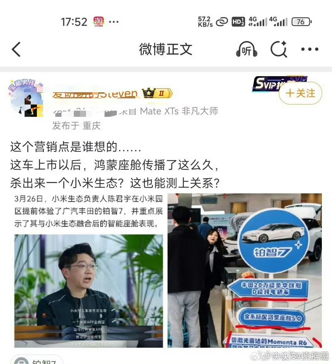 诶,你说这些人咋就这么丢人呢?当时广汽自己说的已经接入米家系统的到你这怎么成了小米蹭了?