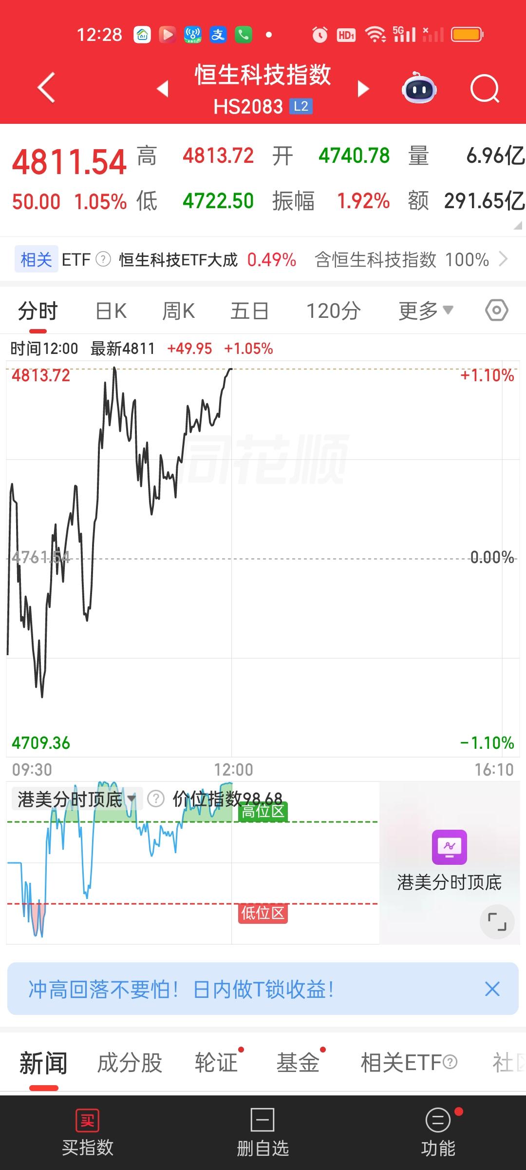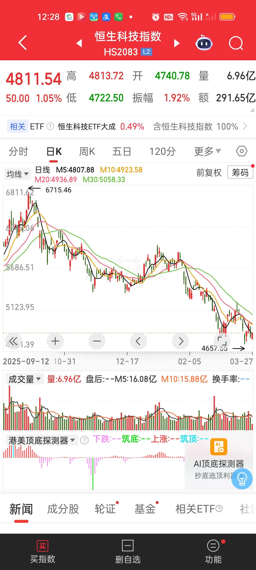 港股今天非常帅气啊,我们中午收盘后它们依然在上涨,没有跟随昨晚的美股暴跌,恒指和恒科又成功站上5日线了。但现在外围市场是很不稳定的,我估计还会在这个地方反复震荡磨底。甚至会再破前低也说不定。其实说白了还是有些鸡肋,食之无味弃之可惜。