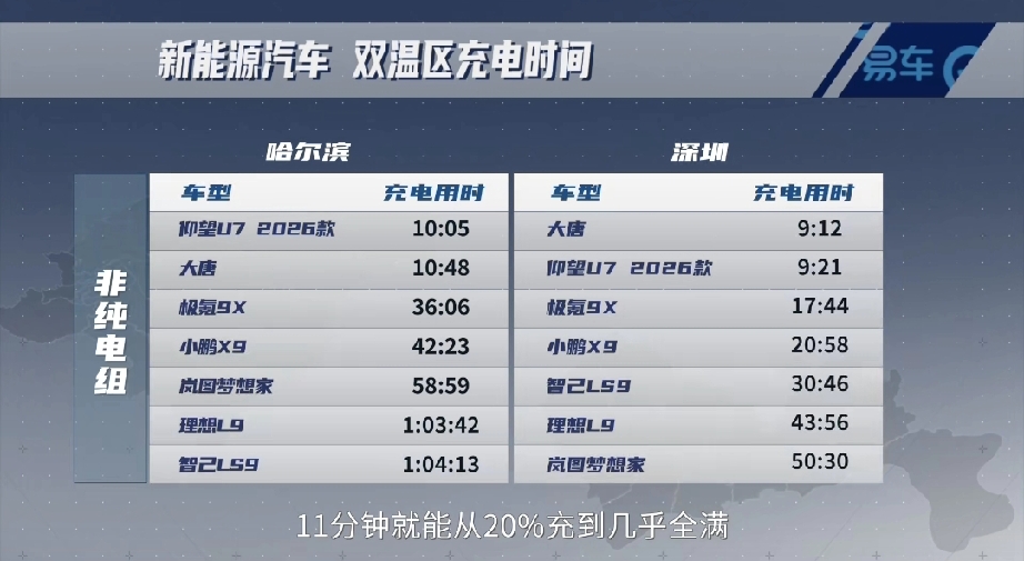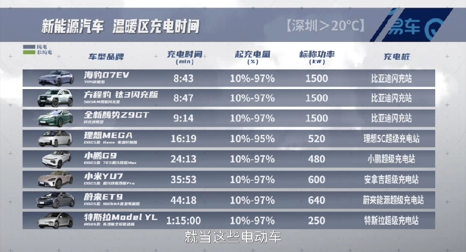最近易车挑选国内充电功率较快的15款新能源汽车进行充电测试,分别测试了常温充电和零下20多度的极寒充电速度。结果显示比亚迪的闪充车型断崖式的领先,最快8分40多秒就从10%充到97%的电量,哪怕是极寒条件下,方程豹钛3更是仅用9分57秒就从20%充到97%。而参加同一批测试的车型中,特斯拉modelYL最慢,花了1小时45分。这差距近乎10倍! 平时大家说比亚迪闪充口号“5分充好,9分充饱,零下20度只多3分”,感觉并不强烈!但是,当把所有的车放到一起比较充电速度时,这种冲击才能体现出来!当别人都充好时,自己的车才充不到一半,这种落差是巨大的! 当前,比亚迪的闪充充电站已经建设路5200多坐,现在外部的充电站已经远远超过了4S充电站座数!这就意味着,以后快速充电将随处可用!这在油价重回9元时代,务必珍贵,以后大家充电和加油一样方便,那么电车低廉的用车成本,舒适的驾乘体验,智慧的开车优势将被无限放大! 那么现在,你是会选择油车?还是选择有闪充的电车呢?