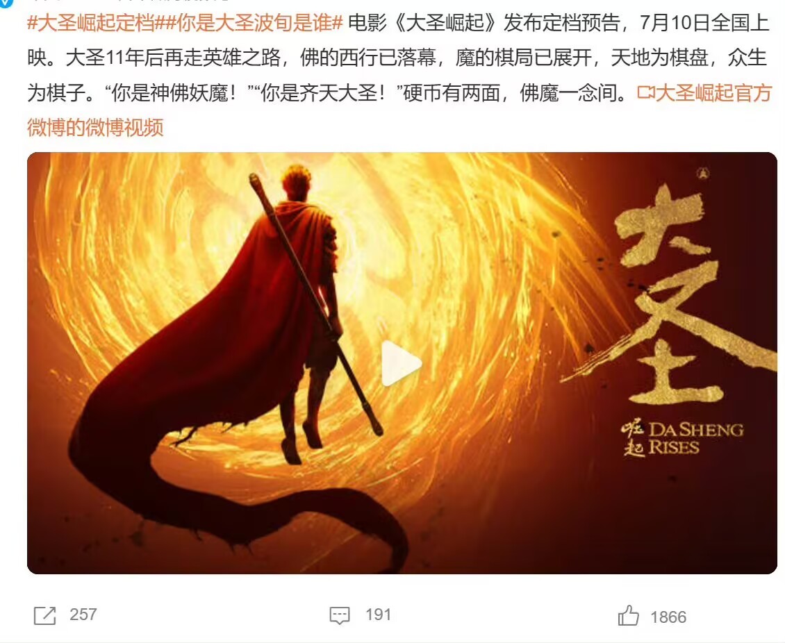 大圣崛起定档真的替大圣情怀党捏把汗,刚定档的《大圣崛起》可别当成《大圣归来》续作冲了!