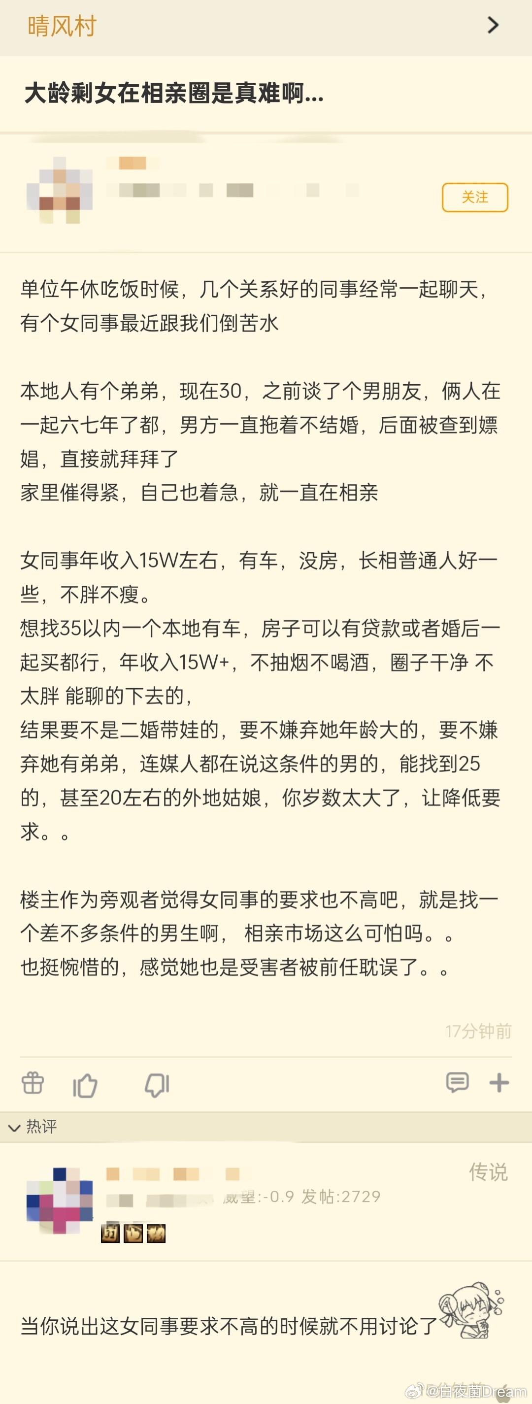 能跟大龄剩女聊的下去,证明情商相当不错,30多男的很多发福的,一定颜值,情商高,15万的高收入,妥妥的高富帅了,有点脑子的都找25左右的女的了