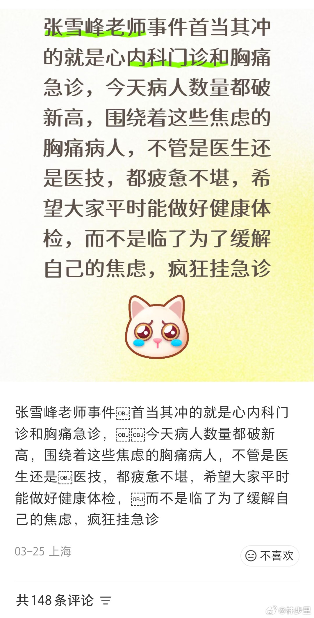 张雪峰的去世,让一堆人跑去挤内科,胸痛门诊,急诊…