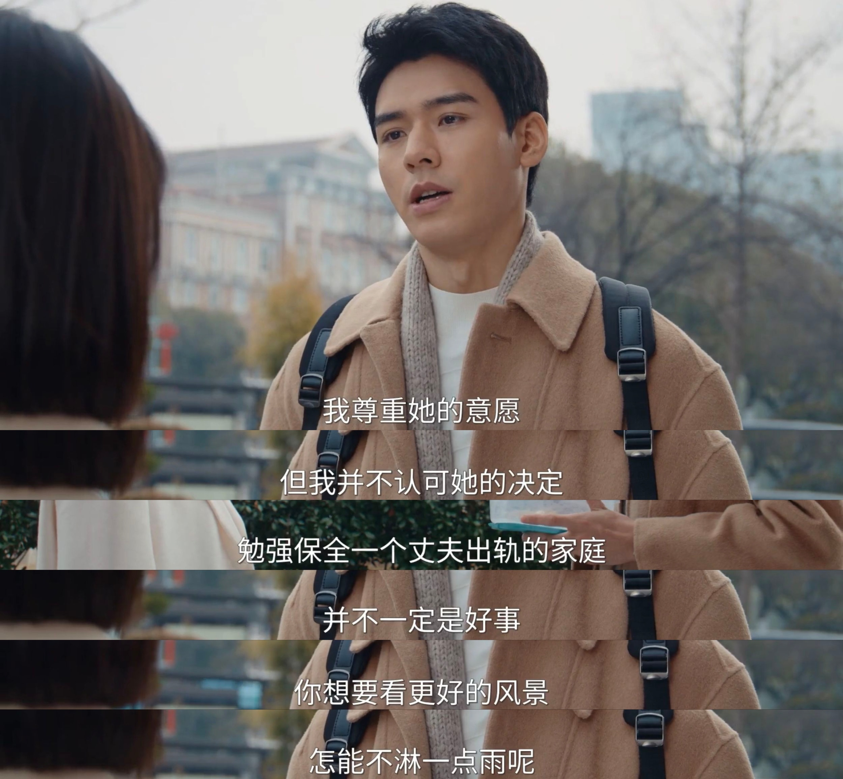 在这两集中,沈谢秩这一人物呈现出更多的面向。他开始倾听他人的声音,比如主动打电话询问当事人是否真的不愿离婚,然后尊重她的意愿,但“想要看更好的风景,怎能不淋一点雨”,依旧是他坚持的观点,也就是说,在他的观点和己见之下,有了细微的缝隙,可以照进更多烟火之光,相信这会在判决与调解之间架起一座桥梁!