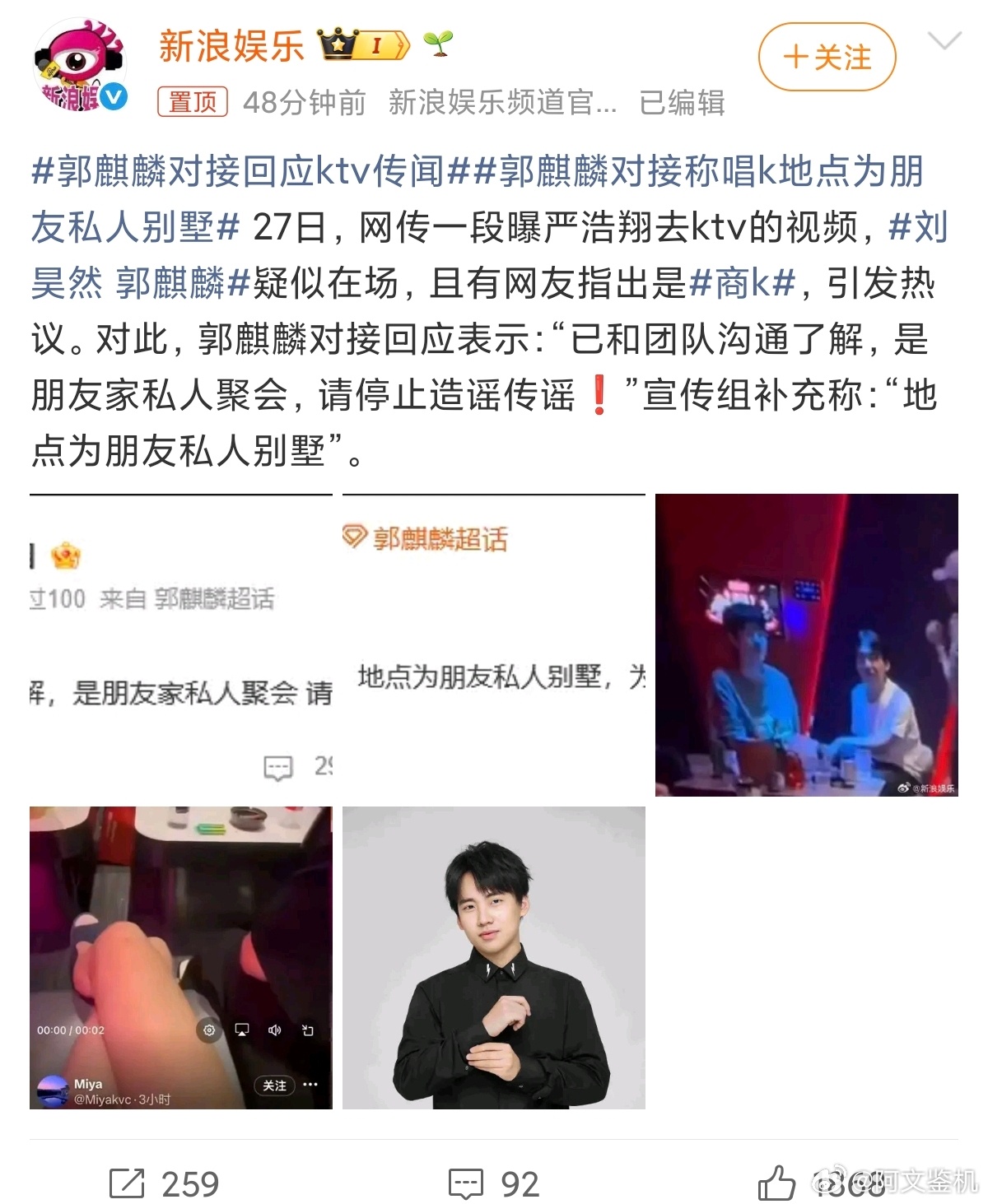 郭麒麟对接回应KTV传闻我觉得网友真的管太宽了,退一万步讲,即使不是私人别墅,就