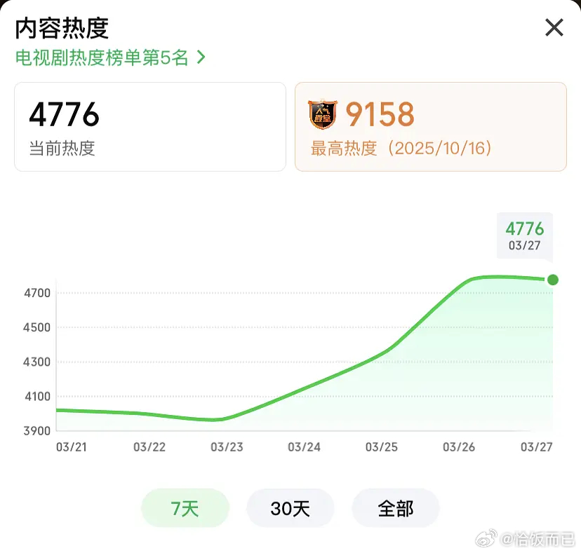 陈哲远一笑随歌已超昨日峰值,电视剧热播榜前进三名