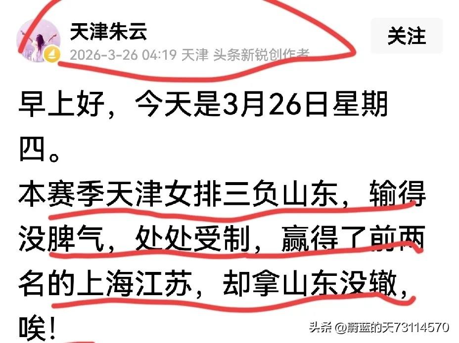 [比赛的输赢与名次归根结底是赛事的输赢与名次] 比赛的输赢从来都是赛事的输赢,最终的名次也是由分阶段的常规赛、晋级季后赛及半决赛和总决赛的结果来决定的。 一些人为掩尴尬,有意识的把赛事中赢了一局,赢了主要对手一两场,欣喜若狂,进行盲目夸大,推理,肆意炒作,给人的感觉,就好像是赢了赛事,得了冠军一样。 而对自身实力不济,赢少负多,输掉关键比赛,输掉整个赛事,则轻描淡写或进行偷梁换柱,偷换概念且有违逻辑的描述。 例如:说天津女排赢了前两名的上海和江苏女排,却三负山东,输得没脾气。什么意思?难道天津女排只赢没输过前两名吗?天津女排与上海比拚是2胜2负,与江苏对决是1胜4负(含金局)。还有,天津女排赛中是赢过上海和江苏女排,就有必然联系一定不能输给山东女排吗? 事实上,是上海女排击败山东,江苏女排淘汰天津,而会师总决赛的。上海和江苏女排才是赛事的夺冠大热门和赢得赛事的赢家,这是两队的综合硬实力所决定的。