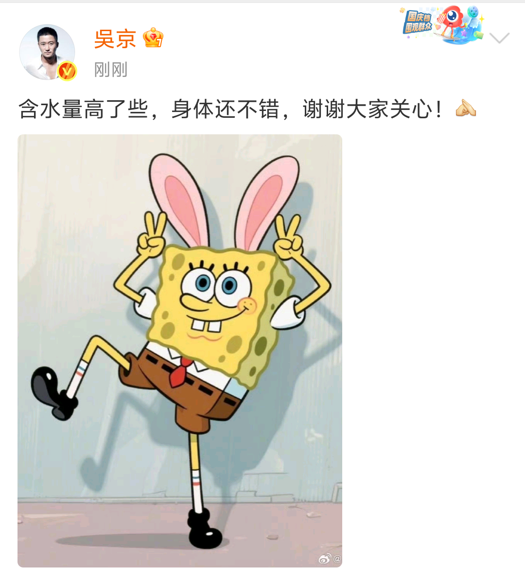 吴京回应水肿:含水量高了些,身体还不错吴京回应水肿吴京说自己含水量高了些