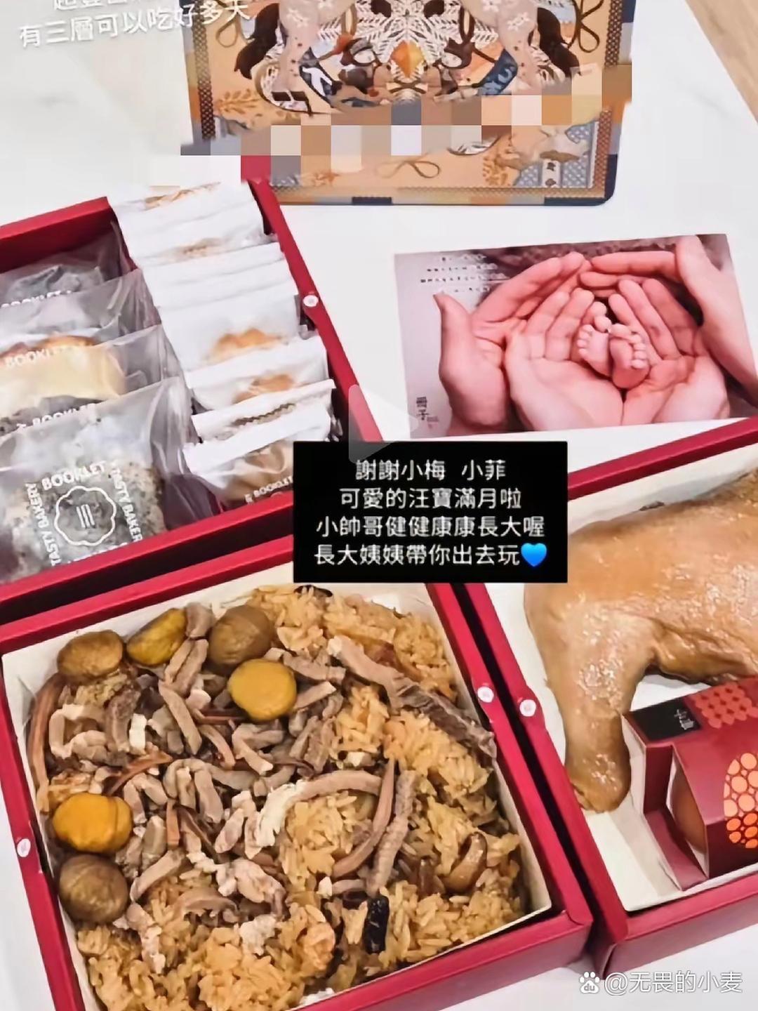 筱梅和小菲为小汪宝过满月啦!满月礼油饭好丰盛!卡片和礼盒都很精致! 筱梅的朋友还称赞小汪宝的脚脚太可爱了! 看到小汪宝满月的画面真的太温馨了!丰盛的油饭、精致的礼盒和卡片,处处都透着用心和爱意。亲朋好友纷纷送上祝福,还夸宝宝的小脚脚可爱,满屏都是温暖和喜悦。真心祝福小汪宝健康平安、快乐长大,也祝愿筱梅和小菲一家和和美美,幸福常伴,日子越过越红火。