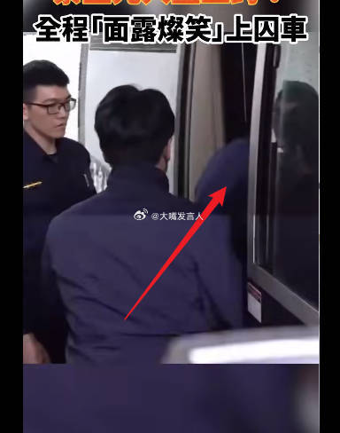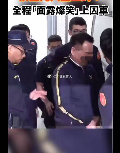 台北专家被戴上手铐,面带微笑,走进囚车