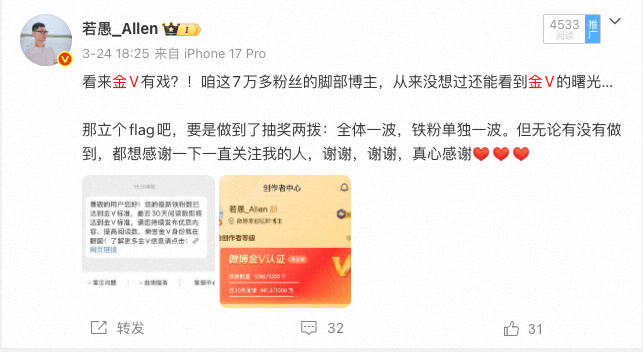 还有一点,做账号其实不是我的主业,一直都不是。所以,如果我有的时候没有回复或者是沉默,大概率是主业得先忙。当个脚部博主就挺开心的,继续佛系运营,争取继续给大家带来好的内容。