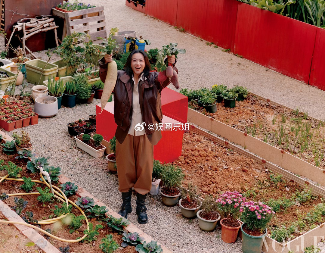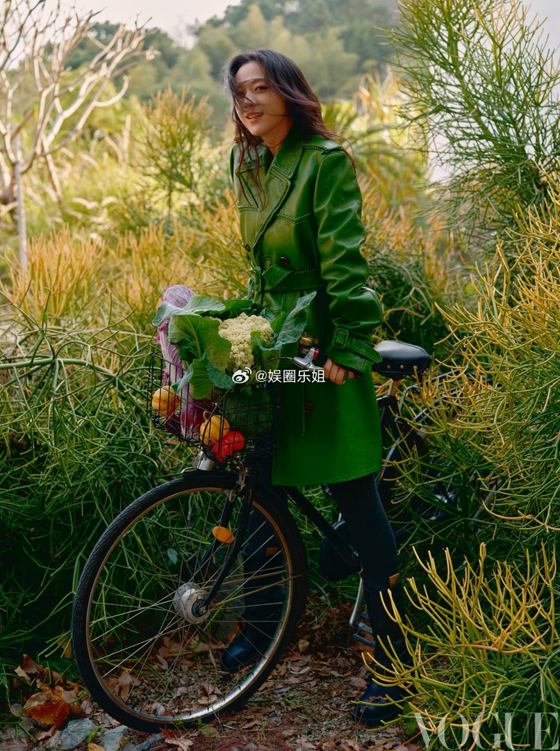 汤唯✖️《VOGUE服饰与美容》四月刊封面,取景福建霞浦菜园,把时尚大片拍出了烟火气。就地取材用胡萝卜刻“VOGUE”印章,骑着单车穿梭在绿意之间,Burberry 2026夏季系列在田园里别有一番生命力。