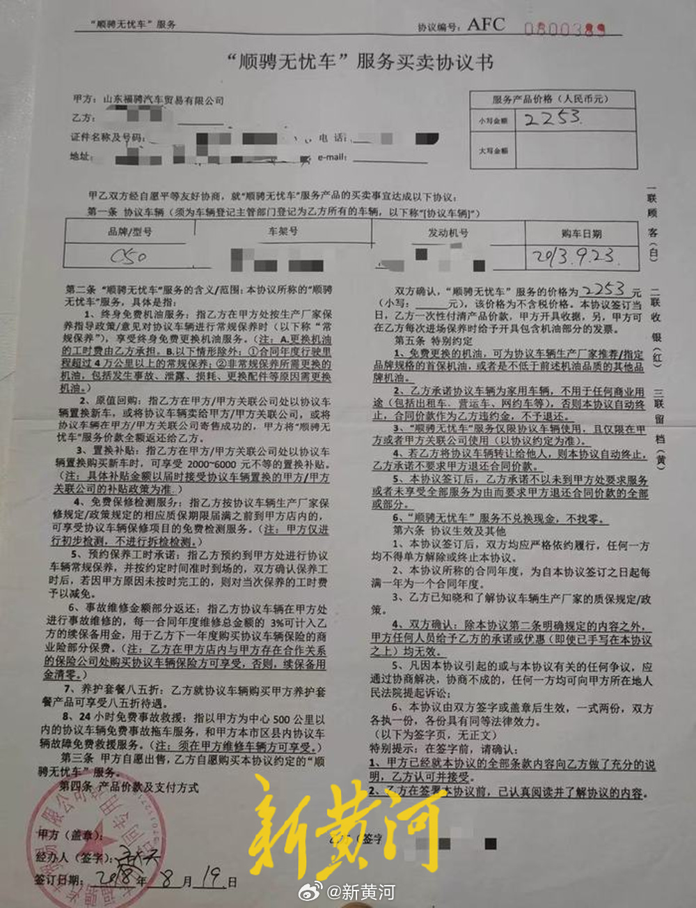 【#济南市民购顺骋无忧车服务遇退费难# 工作人员回应:合同当时已签字,具体情况还在了解 】购买服务时销售承诺“卖车即退费”,六年后卖车时却被告知“只能卖给他们或关联公司”。近日,济南市民张先生向新黄河记者反映,其在山东福骋汽车贸易有限公司(以下简称“福骋汽车公司”)购买的“顺骋无忧车”服务遭遇了退费难题。