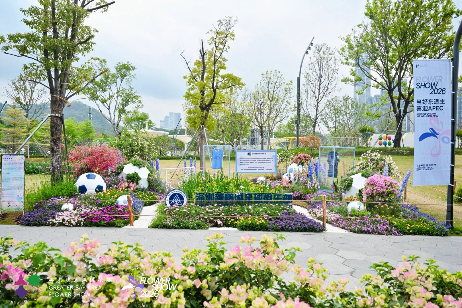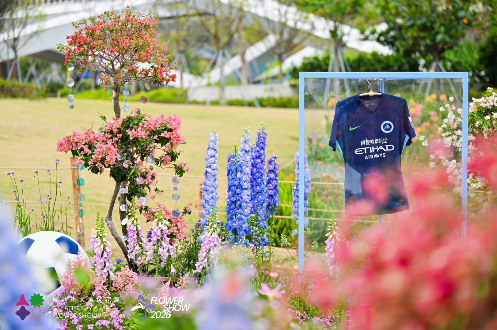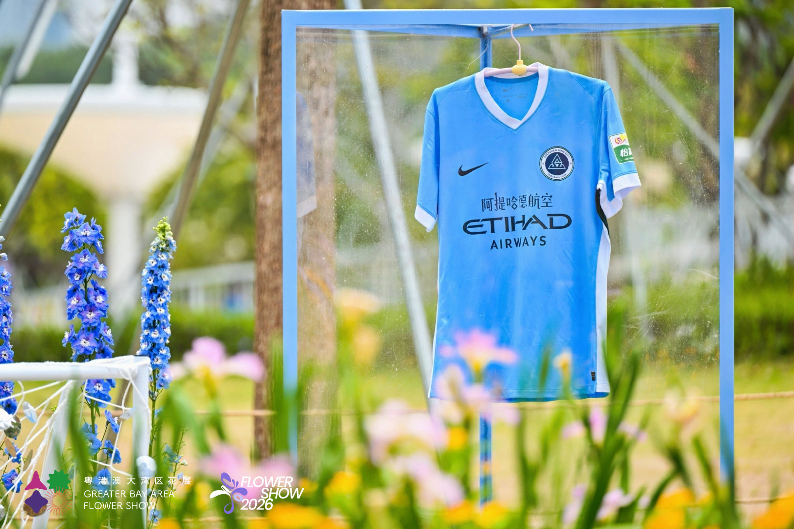 新鹏城主题展台也将亮相花展以“新鹏城蓝”为底色主客场球衣嵌于花丛之间是绿茵的热血,也是春天的诗意