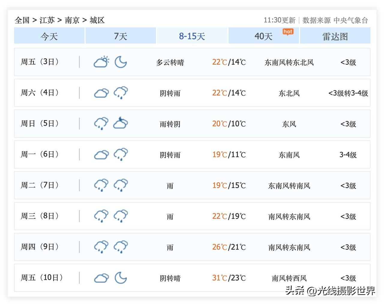 太棒啦!这周末,江苏省南京市,多云晴好,特别适合踏青赏花!3月28日,星期六,南京多云!3月29日,星期天,白天,南京多云,晚上小雨……3月30日,星期一,南京小雨转阴…… 中央气象台的最新天气预报显示……这周末,南京玄武湖将会人山人海,鸡鸣寺将会人挤人,中山植物园将会有很多漂亮小姐姐各种拍照…… 樱花盛开的季节,迎来一个出太阳不下雨的周末,这是老天爷给南京人送上的多么贵重的一份大礼啊! 这周末之后……南京春季赏花的高潮就划上句号啦! 接下来,是所谓的最美人间四月天!