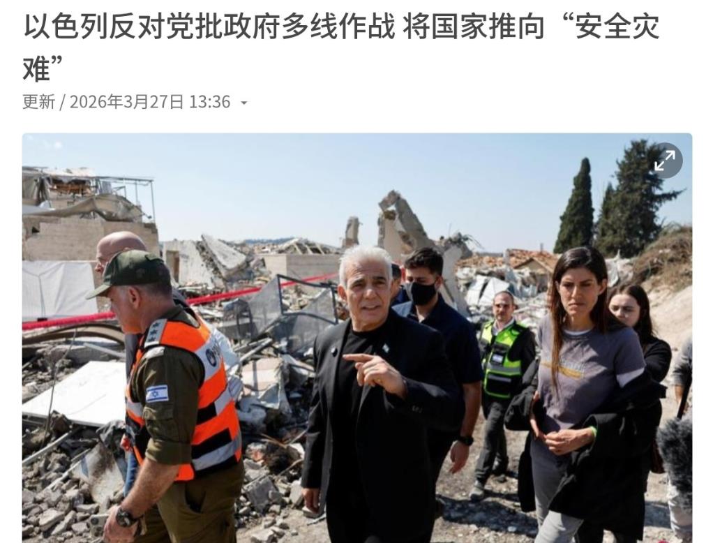 反对党彻底“跳船”了,内塔尼亚胡现在麻烦大了!3月27日,根据新加坡联合早报报道,以色列反对党领导人拉皮德公开批评以色列总理内塔尼亚胡。拉皮德表示,在野党和执政党联盟对伊朗战争的政治共识已告终结,政府在多个方向同时推进军事行动导致兵力吃紧,正将国家推向安全灾难。以色列国防军已经不堪重负,甚至超越了极限。