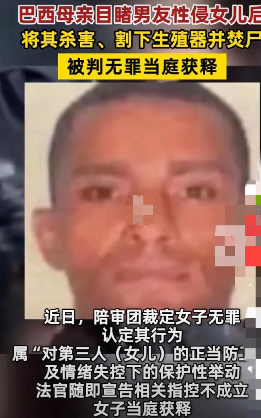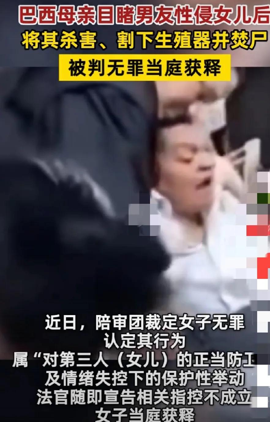 巴西母亲怒杀男子获释 好样的,敢对自己女儿下手,正当防卫,没收