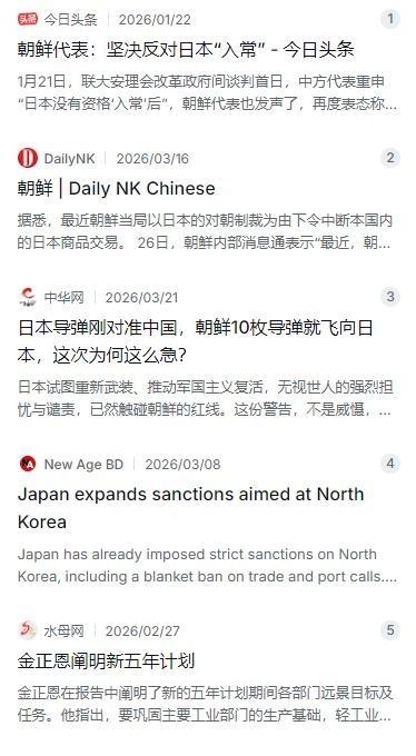 日本为什么忌惮朝鲜!第一,朝鲜境内没有日企,人家不稀罕,第二,朝鲜人也不用日本的东西,你在朝鲜也几乎看不见日货,第三,朝鲜和日本也没有建交,朝鲜将日本视为了“千年宿敌”。 朝鲜经济走自力更生道路,境内基本没有日本企业。日本自身对朝鲜实施严格贸易限制多年,正常投资和进出口渠道受阻,早年尝试参与罗先经济特区项目也未能推进,那里主要是其他国家商人活动。日本企业缺少进入资格,无法通过投资建立影响。朝鲜2024年国内生产总值增长3.7%,制造业、建筑业和矿业产出增加,粮食和基础工业维持一定自给能力,这让外部资本难以发挥杠杆作用。日本习惯的经济绑定方式在这里找不到着力点。 朝鲜民众日常生活中很少见到日本商品。平壤等地商店主要出售本地产品或中国货物,国家层面有管控措施,限制特定日本产汽车、家电等流通。即使有少量老旧二手车,也只是早期遗留,无法形成规模。朝鲜从教育中强调历史事件,包括古代壬辰倭乱和近代35年殖民统治中的相关经历,民众对日本相关物品保持距离。这种局面让日本通过商品培养好感的尝试难以实现。 两国至今没有建立正式外交关系,是东北亚地区唯一这样的邻国。没有常规沟通渠道,摩擦发生时双方直接应对。2026年日本推进导弹部署计划后,朝鲜多次进行导弹测试,包括向日本海方向发射多枚弹道导弹。日本方面对此提出抗议,但缺乏直接对话机制。历史遗留问题如殖民时期事件和日本公民相关案件,进一步加深双方互不信任。 金与正作为劳动党中央委员会干部,多次就日朝关系表态。2026年3月,她针对日本首相表达首脑会谈意愿一事回应,指出如果日本坚持单方面议题,朝鲜领导层无意见面。她强调日本需与过时做法决裂,否则双方没什么可谈的事情,并表示个人不希望看到日本首相访问平壤。这种立场让缓和空间难以打开。 日本忌惮朝鲜的点在于对方不受其常规套路控制。经济上朝鲜不依赖日企投资,市场上日本货难有立足之地,外交上没有建交渠道缓冲。朝鲜手握核武和导弹能力,多次发射行动让日本难以预测底线。面对这种软硬不吃的局面,日本的制裁、渗透和斡旋手段都难以奏效。历史记忆在朝鲜官方叙述中长期存在,日本试图淡化或回避相关赔偿时,朝鲜方面保持强硬回应。 日本加强监视和军事准备,朝鲜则推进导弹测试和防御能力建设,包括从新舰艇发射巡航导弹。双方在历史问题和安全关切上立场对立,没有出现改善迹象。金正恩继续领导朝鲜,推动军事现代化和国内建设。关系保持在强硬对峙中,日本处理相关事务时面临独特挑战,这种无直接依托的状态延续下来。