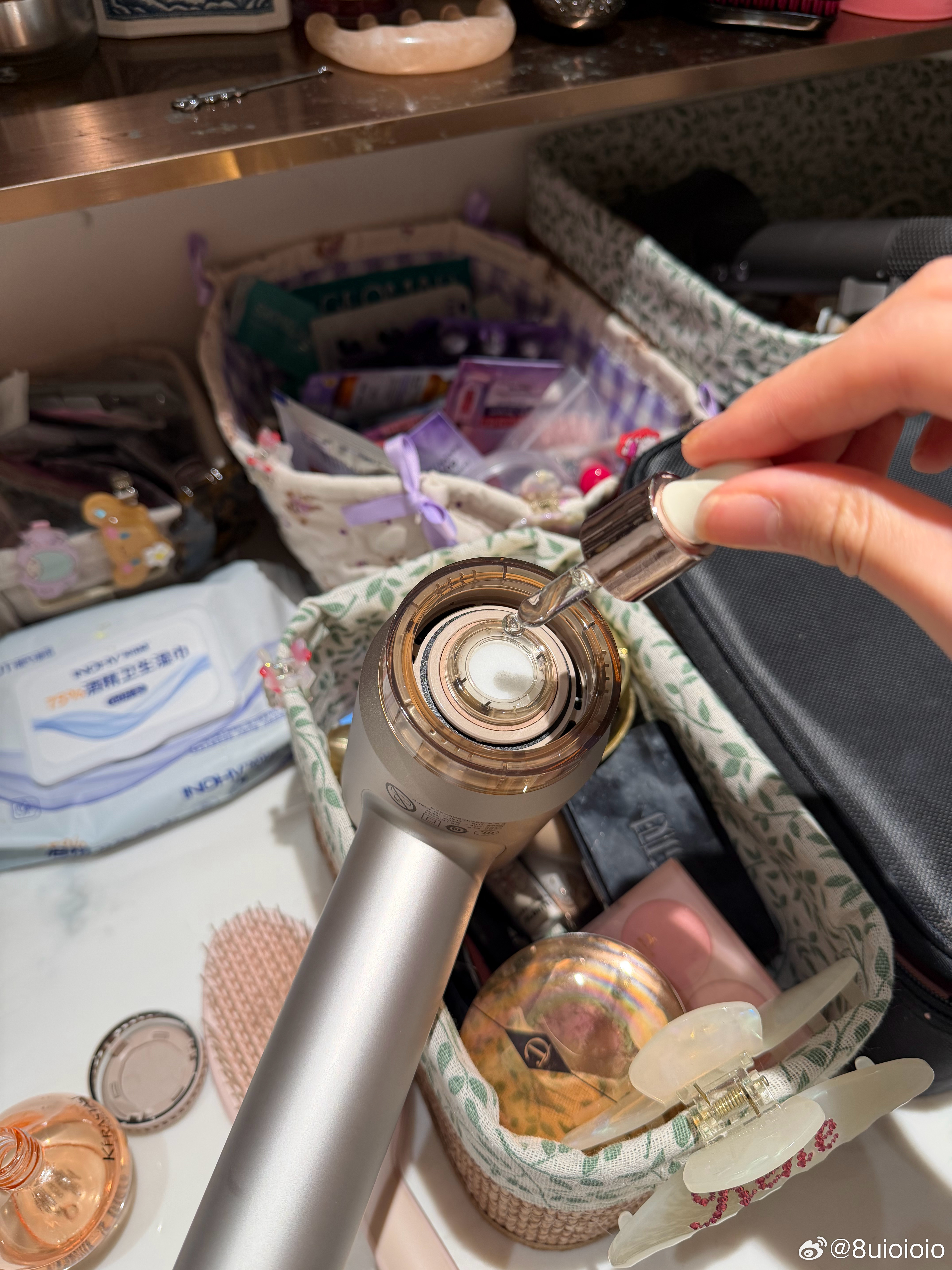 漂完的头发又干又躁,精油都用光好几瓶了。普通吹风机一吹就炸毛打结,怎么梳都梳不开😫实在受不了,换了个带精油风嘴的吹风机!直接把精油滴在风嘴里,吹出来的风都是润润的精油风。现在吹完头发又顺又滑,完全不毛躁,精油都省了好几瓶!没它真的不行了😚😚😚