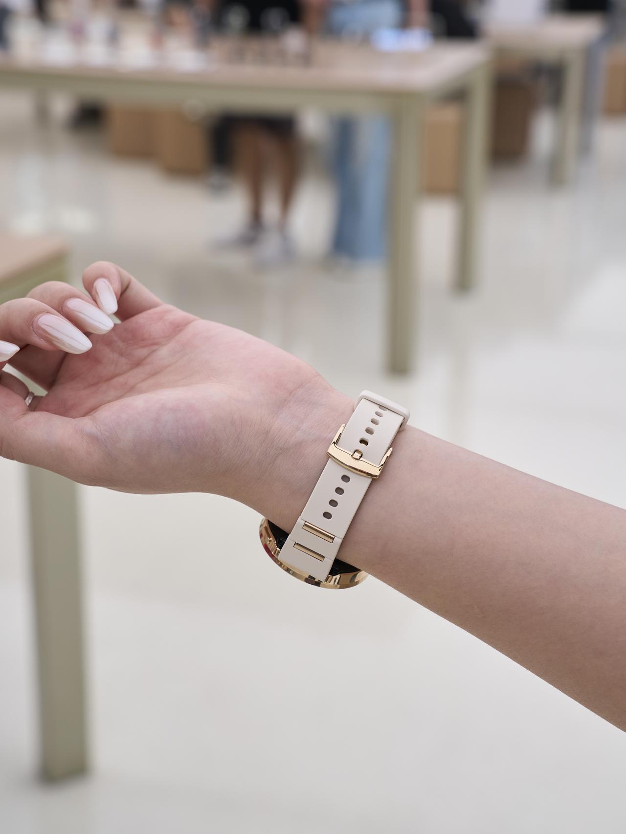 帮大家试过了,莎莎新手表确实好看✨ 今天午休去OPPO门店试了刚出的Watch X3 mini金色款,感觉还挺适合啊 - 试了一下⌚️OPPO Watch X3 mini金色 感觉实物比图好看,白金配色很显白 配西装、衬衫或者简单T恤都行 表冠也是金色的,看着质感不错 上手分量感刚好,不压手但能感觉到用料扎实 钻石切面表圈也很好看😍 侧面看blingbling的,不同光线下折射很高级 蓝宝石表镜通透度很高 手指划过很顺滑,关键是不怕刮 - 我没想到的是,这个竹节表带超贴合手腕曲线 戴一下午都没勒痕,透气性也很好 而且还能自由调节长度,细手腕女生友好 🤔目前来看,OPPO Watch X3 mini颜值是真不错 戴着也很舒服,不愧是莎莎同款 不过我建议一定要去线下试戴! 上手的质感和图片完全不一样 金色款真的太适合通勤了~ 智能手表OPPO Watch X3 mini