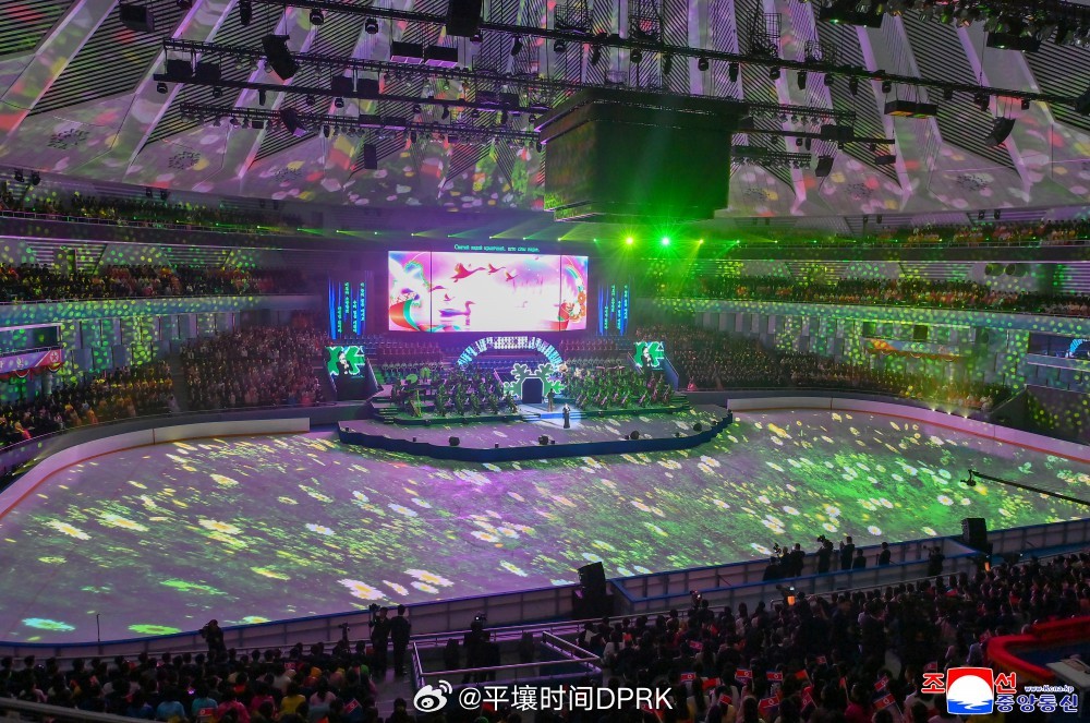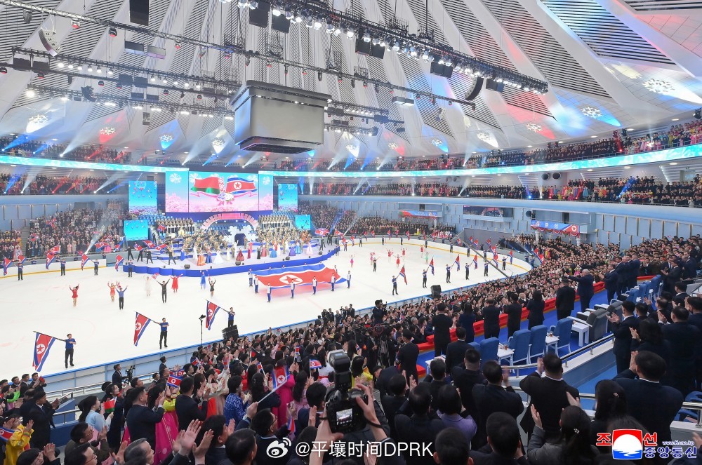朝中社平壤3月27日电 白俄罗斯共和国总统卢卡申科同志怀着白俄罗斯人民的友好情谊对我国进行正式访问。欢迎演出3月26日在滑冰馆举行。
