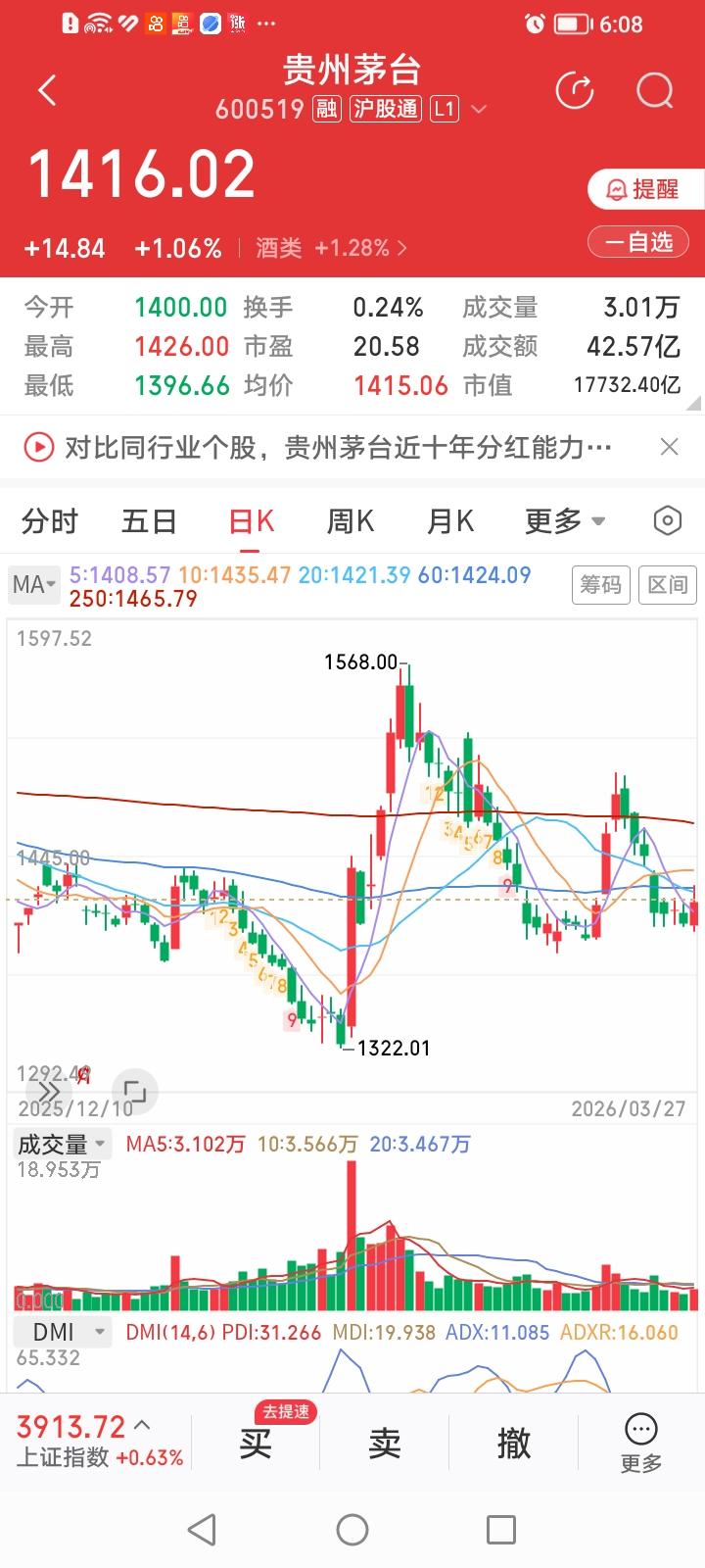 什么情况?高端白酒茅五泸今天股价竟然涨反个了? 泸州老窖收盘上涨1.84%,涨幅第一;五粮液收盘上涨1.35%,涨幅排第二;贵州茅台收盘上涨1.06%,排第三。 感觉茅五泸今天的上涨超跌反弹的味道更浓些。所以估值越低的涨的越好。 但如果从2026年一季报业绩增长情况来看,很可能是贵州茅台业绩增长率更高。所以市场今天交易的是静态估值,还没有开始交易今年一季度业绩增长。 不管老登、小登,业绩好,成长性好,现金流充沛股价就能向上登,否则都会向下崩。