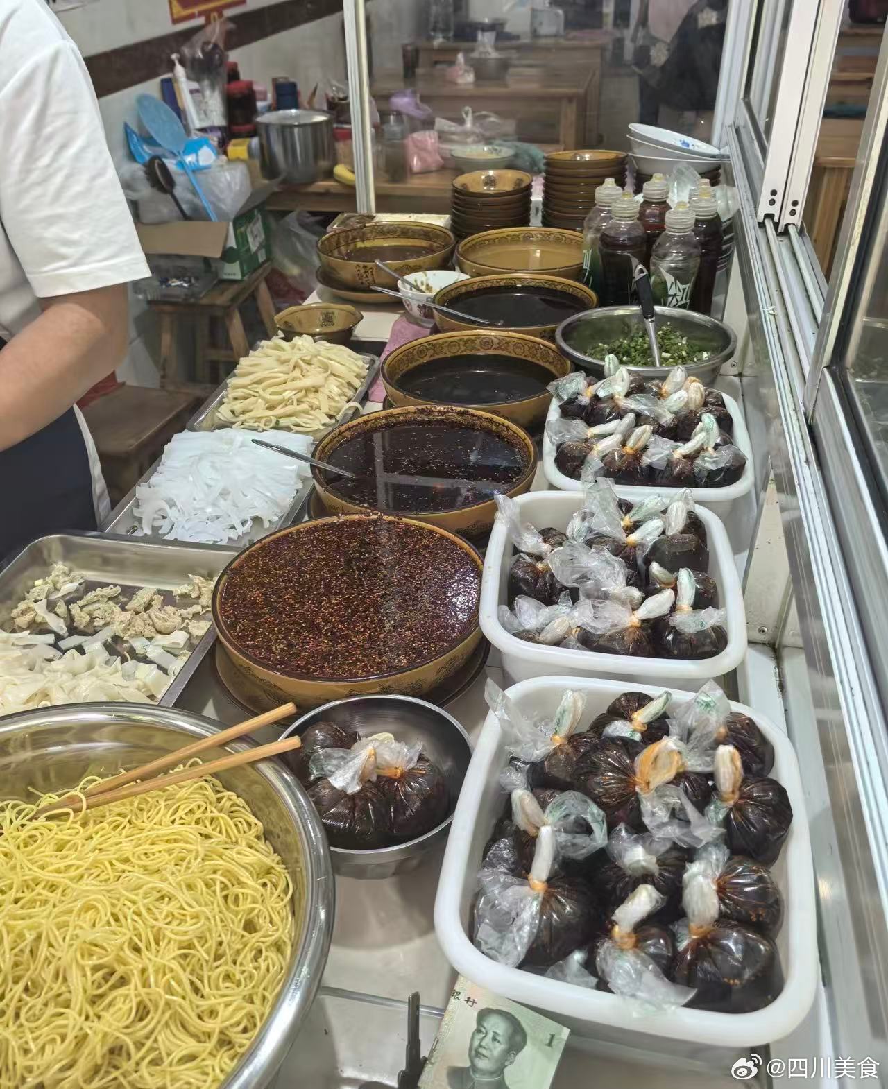 八贵面(师傅总店):乐至有很多八贵面,据说是师傅和徒弟的店,这家是师傅本店,特点就是浇头种类很多,还可以双拼,红油芝麻香气四溢,麻辣鲜香,汤底的味道其实都一样,就是上面臊子内容不同,非常推荐来试试。