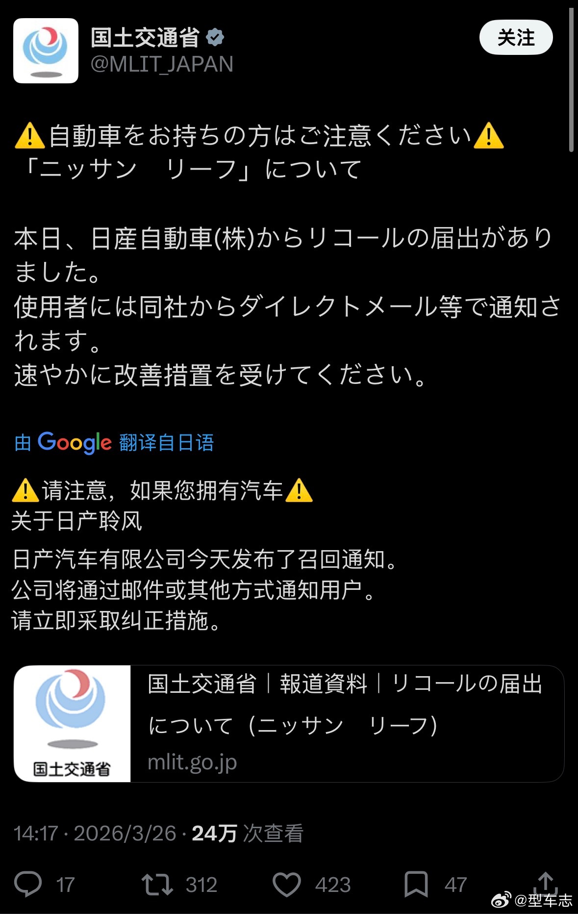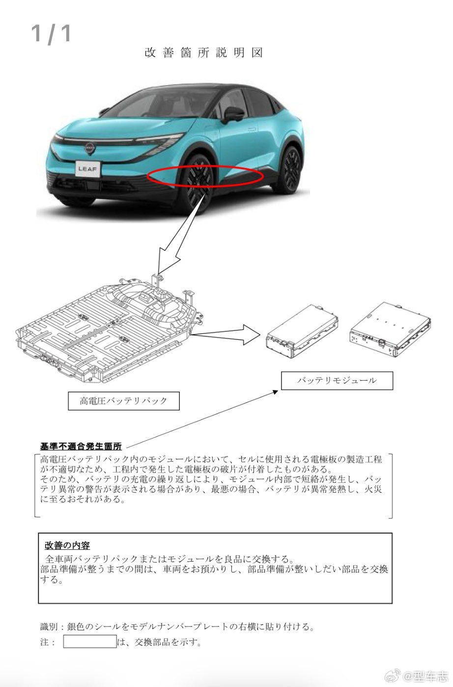 电池车的鼻祖 - 日产聆风Leaf,全新一代刚上市就被召回。由于电池制造工艺问题