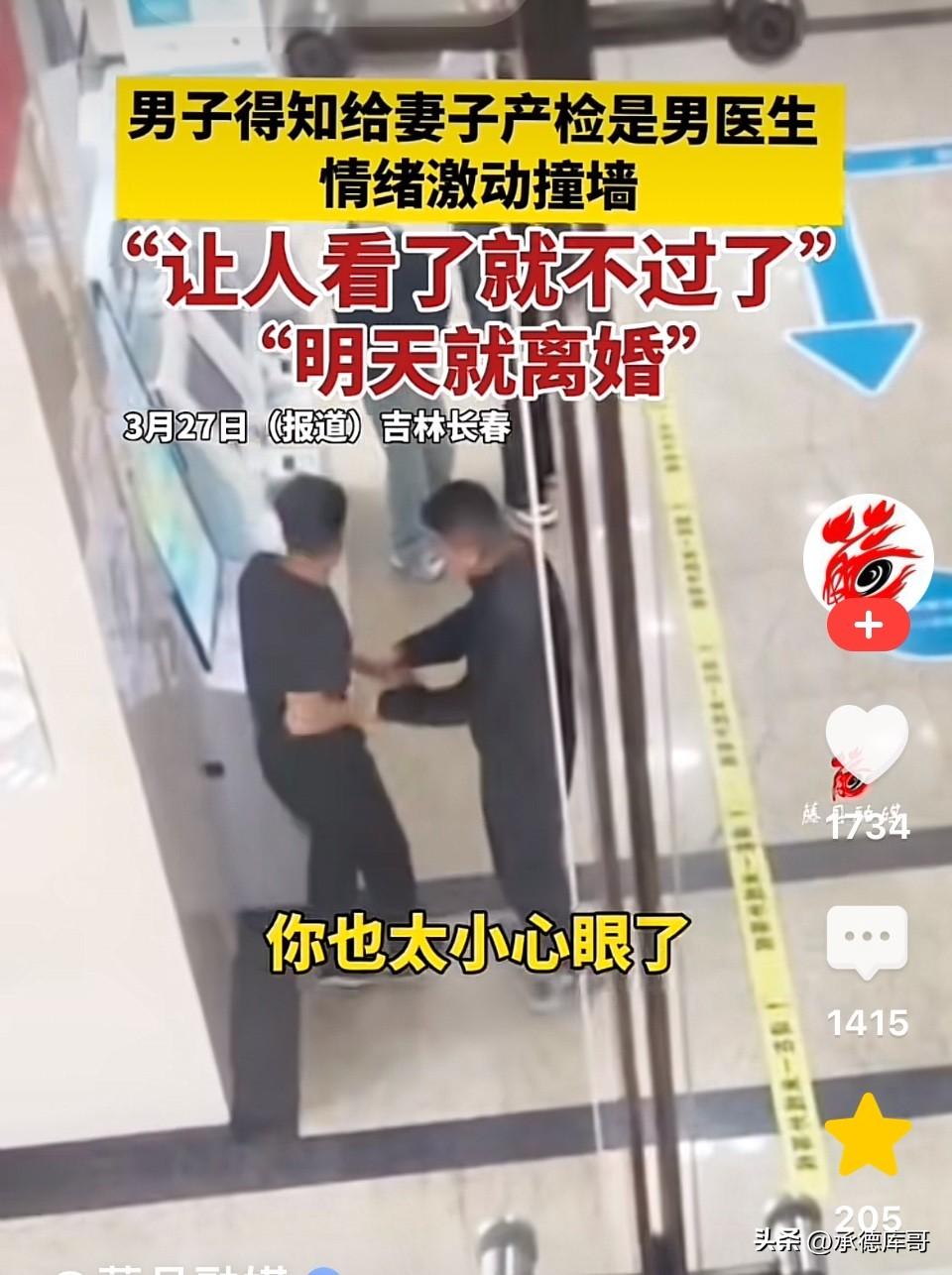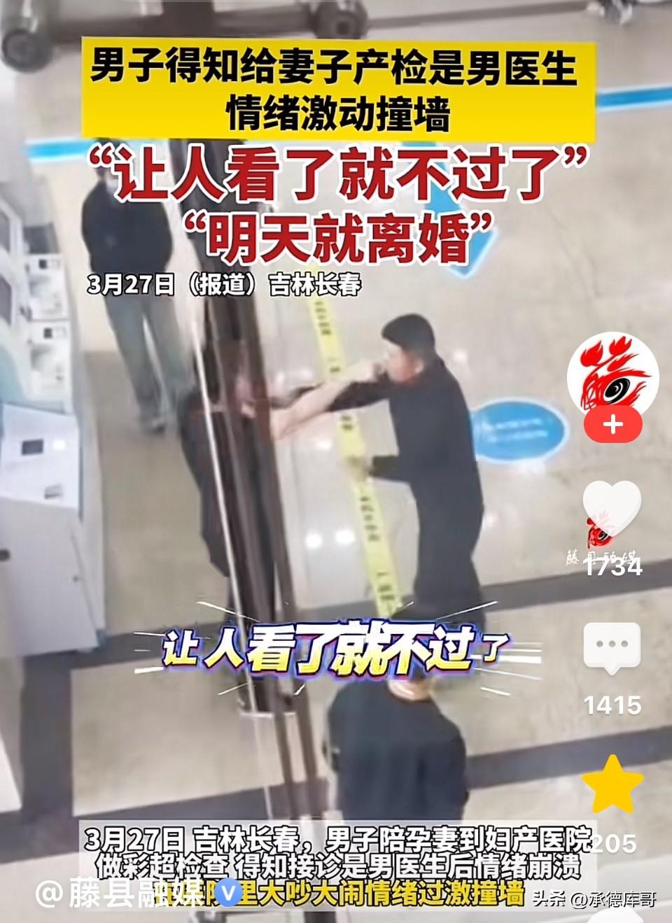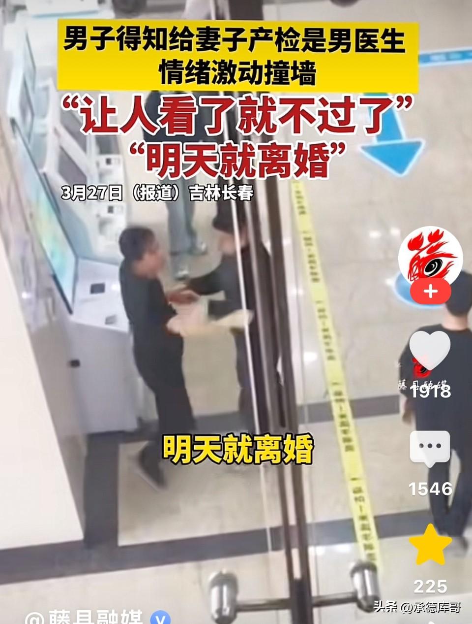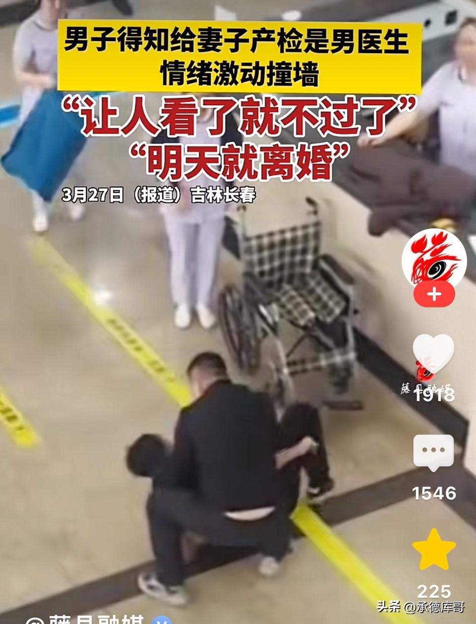 吉林长春,男子陪妻子去医院做产检,当得知做产检是男医生,瞬间情绪失控,急的用头撞墙。男子:看过了就不过了,明天就离婚。 一家医院的产检室外,上演了一出让人哭笑不得的闹剧。 一名男子陪妻子来做产检,当得知给妻子正在做检查的是男医生时,当场情绪崩溃。 在检查室外大吵大闹:不过了!让人看了就不过了!不过了!明天就离婚!指着检查室门就要冲进检查室阻止医生为妻子进行检查。 一名男子上前劝阻:不要那么小心眼,就是做个检查而已嘛! 我必须小心眼!说完男子跑着冲向检查室门口,不停用头去撞门,几次就被撞晕倒在门前。 这一幕,被现场群众拍下,也引发网友热议,有的网友说,本身男医生就不允许做妇科医生,异性的隐私还是要得到尊重! 也有的说,这男的太极端了,这样子以后还怎么过下去呀?我们这里医院妇产科有个男医生医术水平比女医生都高,名气很大,许多女患者都挑那个男医生看病。 还有的说,我爱人两次剖腹产,麻醉师应该都是男医生,抛开愚昧,孩子和大人平安健康就行了,感恩人家! 还有的说,这样男人狭隘自私,极端冲动,赶紧离开! 说实话,看完这个新闻,我先是觉得荒诞,继而是悲哀。 这不是爱,是病态的占有欲。这位丈夫的愤怒从何而来?无非是觉得妻子的身体被别的男人“看了”、“摸了”,自己的“私有财产”被侵犯了。 他把妻子当成了一件属于自己的物品,而不是一个有独立人格的人。 这位丈夫所谓的“尊严”,不过是建立在物化妻子基础上的狭隘观念。他真正在意的不是妻子的感受,而是自己的面子——我的女人,别人不能碰。 用头撞墙、当场喊离婚——这种极端反应,暴露的不是爱得深沉,而是情绪管理能力的严重缺失。 当然,话说回来,这件事医院也并非完全没有责任。 虽然男医生做产科检查是合理合法的,但在实际操作中,医院也应该考虑到部分患者和家属的心理感受。充分保障患者隐私。可以提前告知检查医生的性别,让患者有选择余地。 检查时应该有女护士在场陪同! 这些问题,医院如果能做得更细致,很多不必要的矛盾完全可以避免。毕竟,不是每个人都能理性看待这件事,而医院的服务对象,恰恰就是形形色色的人。 这位丈夫撞的是墙,伤的却是妻子的心。 一个孕妇,挺着大肚子来做检查,本就身心俱疲。她需要的不是丈夫的“捍卫”,而是理解、支持和陪伴。 如果真的心疼妻子,与其用头撞墙,不如多问问医生:“我妻子的情况怎么样?”“有什么需要注意的?” 至于那句“让人看过了就不过了”——如果真的因为这种事就要离婚,那只能说,这个婚,离了对妻子反而是种解脱。 因为一个把面子看得比妻儿健康还重的男人,不值得托付终身。