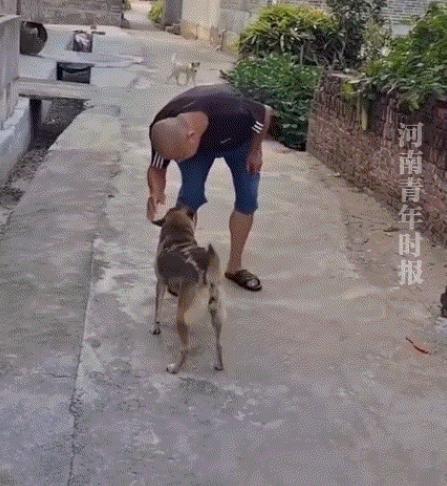 江苏,一老人养了十年的老狗,因最近老人去世了无人喂养,这邻居可怜狗子,便暖心的叫它去家里吃饭。不料狗子的反应,腼腆得像个不好意思的孩子,愣是让大哥喊了好几声,它才开心的跟着大哥上门吃饭了。 真正让人心里发酸的,往往不是一场告别有多大动静,而是告别之后,那个还留在原地的生命,根本不知道发生了什么。江苏一个村子里,老人走了,门还在,院子还在,门板下那个供狗进出的洞也还在。可那只跟了他十年的大狗,忽然就没了等的人。 它没闹,也没跑远,就守在那间空下来的屋前。有人路过,给它丢点吃的。它低头闻一闻,又缩回去。不是没有东西吃,是那口饭的意思变了。以前那是主人留给它的,现在只是别人递来的。 你说它不懂生死吗?未必。它可能不懂“去世”这个词,但它懂脚步声再也不会响起,懂那扇门一直不开,懂每天该回来的人,忽然不回来了。 村里人其实都认识它。 十年了,一个独居老人带着一条大狗,在乡下不算什么稀奇事,可一旦时间拉长,感情就会长出分量。无论老人行至何处,它皆如影随形。老人的每一步前行,都有它紧紧相伴,始终不离不弃。老人回家,它钻过门洞进院。那门洞不是摆设,是老人给它留的路,也是这份陪伴最具体的证据。 越是这种细节,越说明日子不是临时凑合的。门上开洞,吃饭留份,出门带着,回来喊着,这些琐碎东西加在一起,才叫一起过日子。老人走得急,后面的安顿没来得及做。子女没有把狗带走,这件事说不上多惊天动地,却足够改变一条老狗余下来的生活。刹那间,它沦为了“无人认领”之属。仿佛被世界遗忘,孤零零地处于一种被漠视的境地,成了那无人问津的存在。 可它自己显然不这么想。它还把自己当成那户人家的成员,所以它不肯离开。那不是执拗,是守望。很多动物最打动人的地方就在这儿:它们不会给忠诚下定义,但会用身体把这个词站出来。 真正把这事往前推了一步的,是隔壁一位邻居大哥。他不是突然起了善心的旁观者。平时老人遛狗,他都看在眼里。对于这狗的脾性,他心中已略知一二。虽未全然明晰,但也有了个大抵的了解。等到老人走后,它一天比一天瘦,神情也垮下去,他看不下去了,决定把它接到自己家里,至少先让它有口热饭,有个能睡觉的地方。 有意思的是,他没上来就拽绳子,也没硬拉硬抱。那天下午,他带着自家的小狗,走到老人门前,敲了敲门,开口喊它。老狗从门洞里钻出来,先看人,再听声,耳朵动了动,身子却没立刻往前靠。那一刻特别像什么?像一个刚吃过亏的孩子,明明认得你,又不敢马上信你。 这不难理解。失去主人之后,它对这个世界的秩序已经有点乱了。谁会带它走,带去哪里,会不会再被丢下,它都不知道。它站在门口,不只是犹豫那几步路,它是在试探:眼前这个人,到底是路过,还是接住它的人。 大哥没有催,反而让自家狗往前凑,像是替人打个圆场。动物之间有时比人更会沟通,不需要大道理,闻一闻,蹭一蹭,紧绷就松掉一点。过了一阵子,它才慢慢挪步。走两步,停一下。看看大哥,再看看那条小狗。直到确认对方没有恶意,它才靠过去,轻轻蹭了蹭裤腿。那个动作分量很重,因为它不是撒娇,是把剩下不多的信任,又拿出来一次。 很多人爱说“狗通人性”,这话说滥了,容易空。可你看这个细节,就知道不是套话。它到了邻居家门口,没有直接往里冲,而是站住,探头往里看。像什么?像一个突然被邀请上桌吃饭的人,先问一句:我能进吗? 等饭放到面前,它也没立刻狼吞虎咽,先闻,再抬头看大哥。那一眼,不像是在讨好,倒像是在确认规则。大哥点了头,它才低头去吃,而且吃得很慢,很收着。一个十年里被好好对待过的生命,身上会留下规矩,也会留下分寸。 所以你会发现,这只狗后来表现出来的“害羞”,根本不是单纯胆小。那里面至少有三层东西叠在一起。最表面的一层,是受了打击后的紧张。往里一层,是它还没从旧日关系里抽身。再往里,才是最珍贵的部分,它懂得界限,也懂得回应善意。 这也是这件小事最动人的地方。它不是“好心人救助流浪狗”那种标准叙事。狗并不流浪,它有来处。大哥也不是高调出手,他只是把邻里之间该接住的一份责任,默默接住了。 更难得的是,大哥处理这件事的方式很轻。他没有以“救助者”的姿态压过去,而是给它时间,给它缓冲,给它自己走出来的机会。说白了,这不是把一只狗“弄回家”,而是在等一颗受伤的心自己挪过门槛。 老人当年在门上凿出那个洞,大概只是为了让它进出方便。谁能想到,许多年后,这个小小的口子,竟像一枚留下来的注脚:爱不是抽象的,它总会落在具体地方,落在门洞,落在饭碗,落在一句招呼,落在一只手轻轻拍头的动作里。 这就够了。对一个受过爱、也失去过爱的生命来说,这已经是很郑重的回答。
