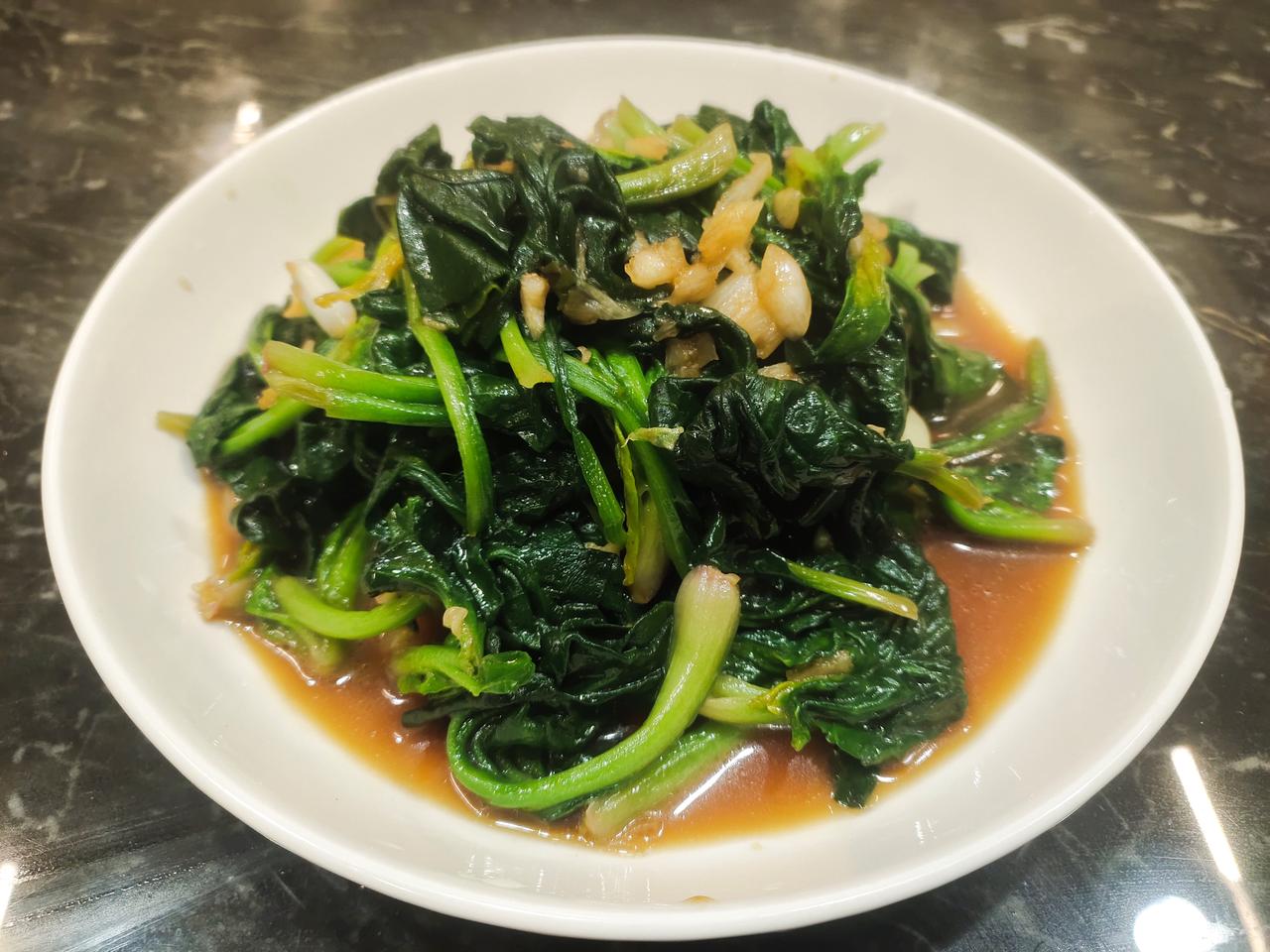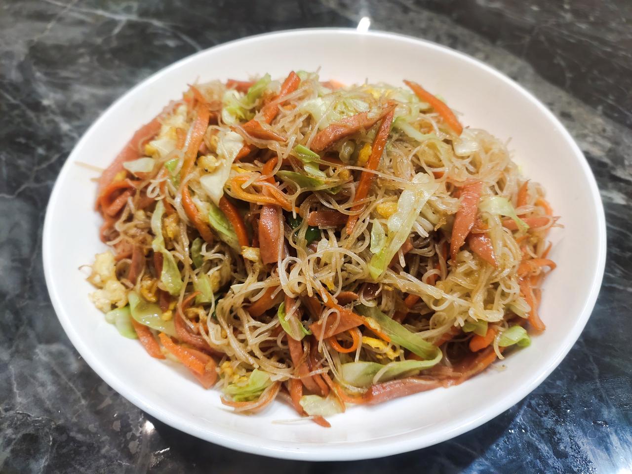 一个人的晚餐,亲自下厨,家常便饭,炒米粉、蒜蓉菠菜、香嫩牛肉,搭配牛奶,简简单单,健康又美味![得意]