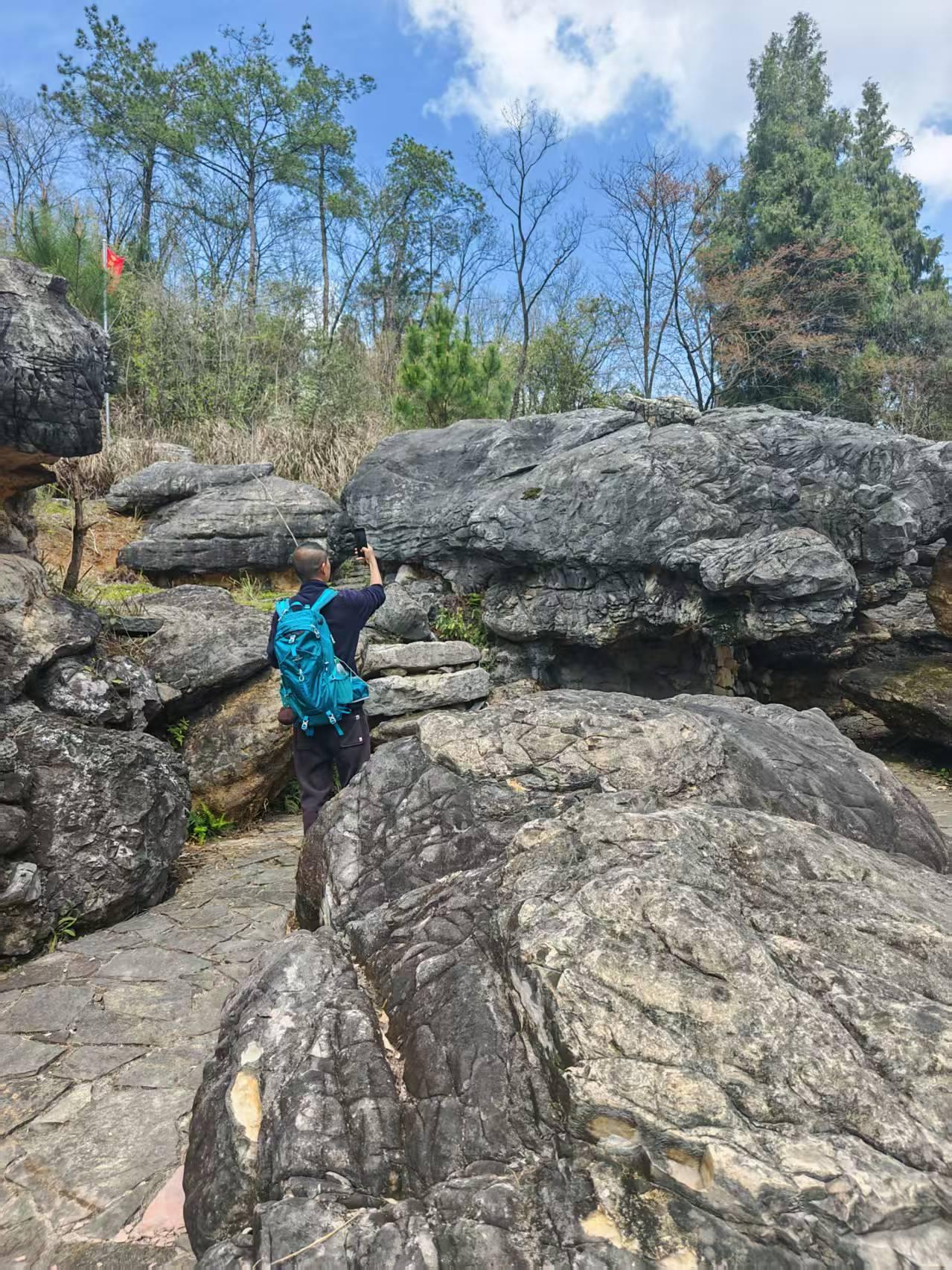 今天去了宜昌腊梅峡,天气真叫一个热啊!走在峡谷里还好,郁郁葱葱,景色赏心悦目,心情是自由自在! 但是在向山顶攀登时候,热的浑身冒汗,气喘吁吁 。台阶坡度也大,近乎七八十度。 从树林钻出来,就看到形态各异的石头。像狮子的双头狮,像乌龟的百龟顶,有点意思。 还看到在一个飞来石上面修了一个烽火台,名为将军台,相当震撼! 这个线路轻松休闲,景色宜人,非常适合踏春出游,快来玩吧!