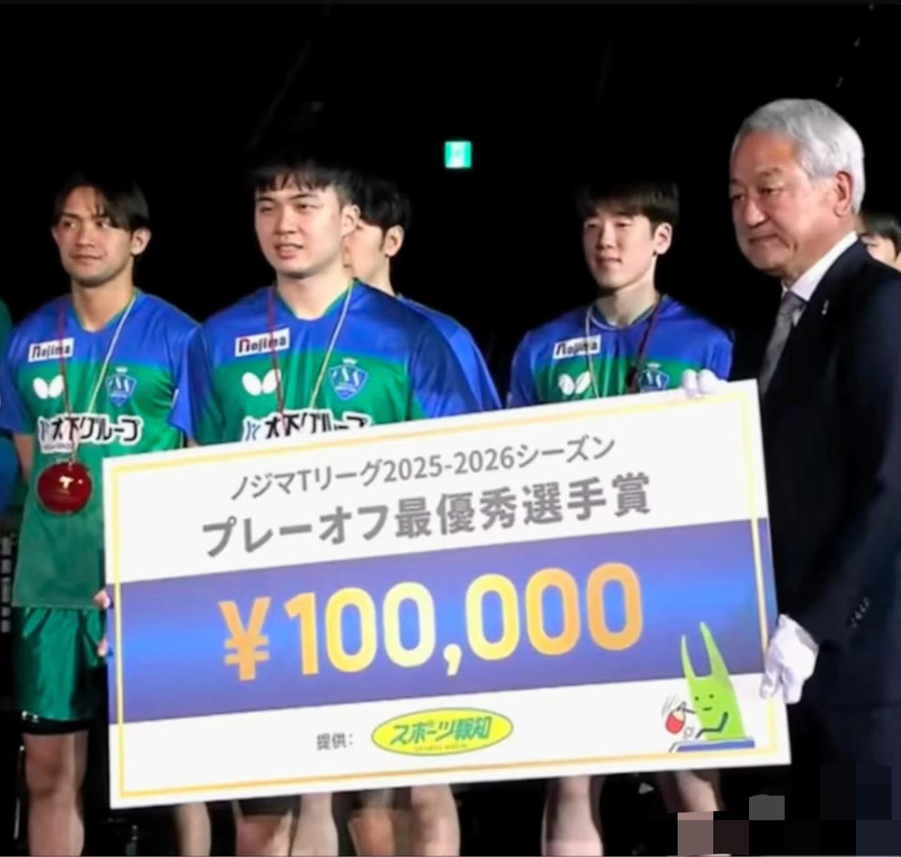 恭喜林昀儒获得T联赛季后赛MVP——木下东京大师队获得冠军! 3月27日,日乒T联赛2025–2026 季后赛男团决赛, 林昀儒/闫安2:0小林广梦/张禹珍 川上流星3:2田中佑汰, 林昀儒3:0张禹珍, 林昀儒获得季后赛MVP, 实至名归, 林昀儒还获得相应的奖金, 不多,也是荣誉的体现! 闫安的双打技术水平很好👍, 和林昀儒的配合很默契, 太累啦,林昀儒会马不停蹄的 继续出征澳门世界杯, 一刻也不愿意停歇, 林昀儒说, 运动员的职业生涯很短, 只想在有限的时间里, 放手一搏!