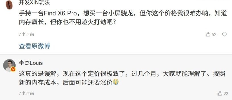 【OPPO 蔡祖轩谈手机涨价,称存储成本继续上涨后面产品会越来越贵】